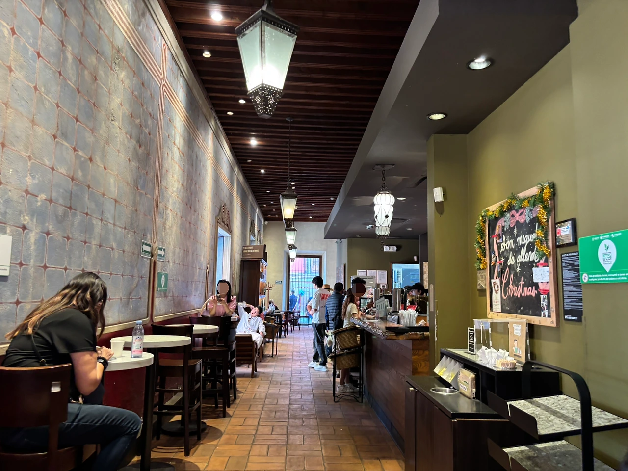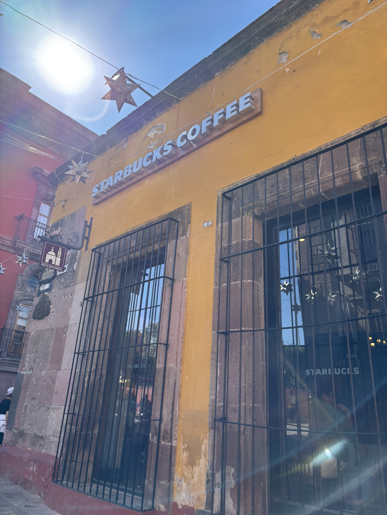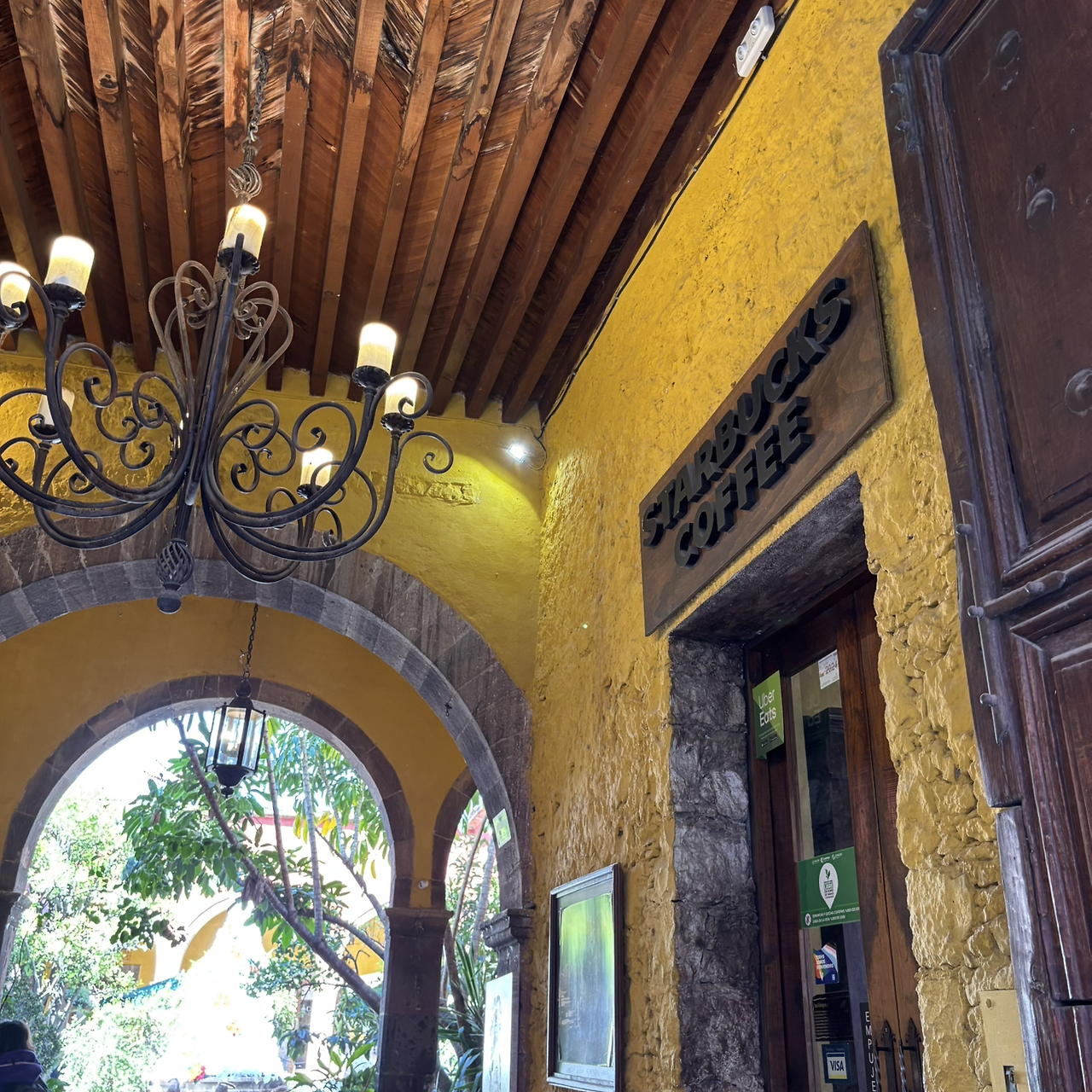 산미겔데아옌데의 스타벅스가 예쁘기로 소문났다기에 아아 수혈겸 방문해보았다. 카페 안쪽은 중세 유럽 도서관같은 인테리어로, 특히 관광지치고 꽤 조용한 편이라 카공하기 적격일 것 같았다. 멕시코시티에서 그러했듯, 이번에도 엉뚱한 이름이 적힌 아아를 받아서 밖으로 나왔다.