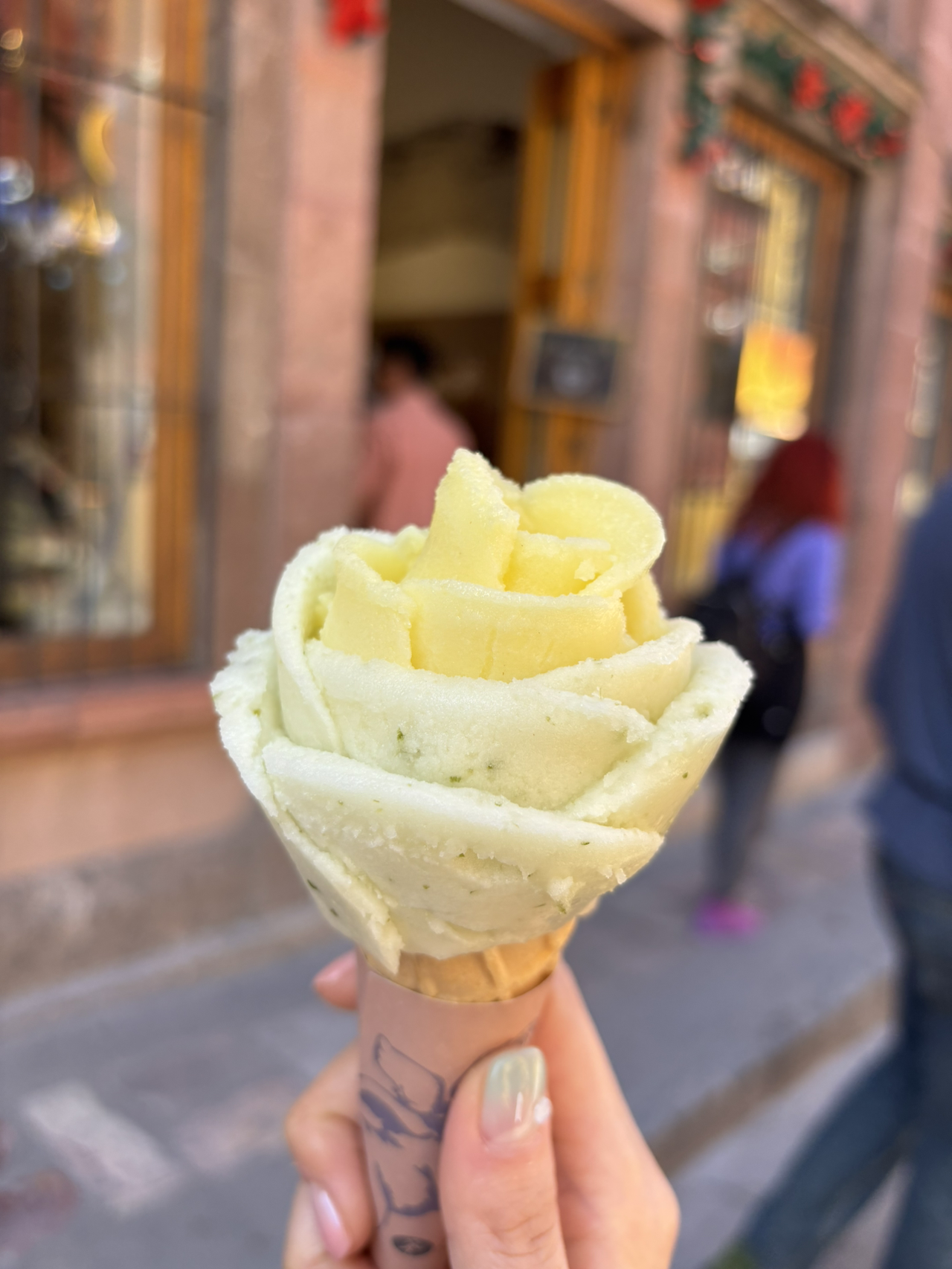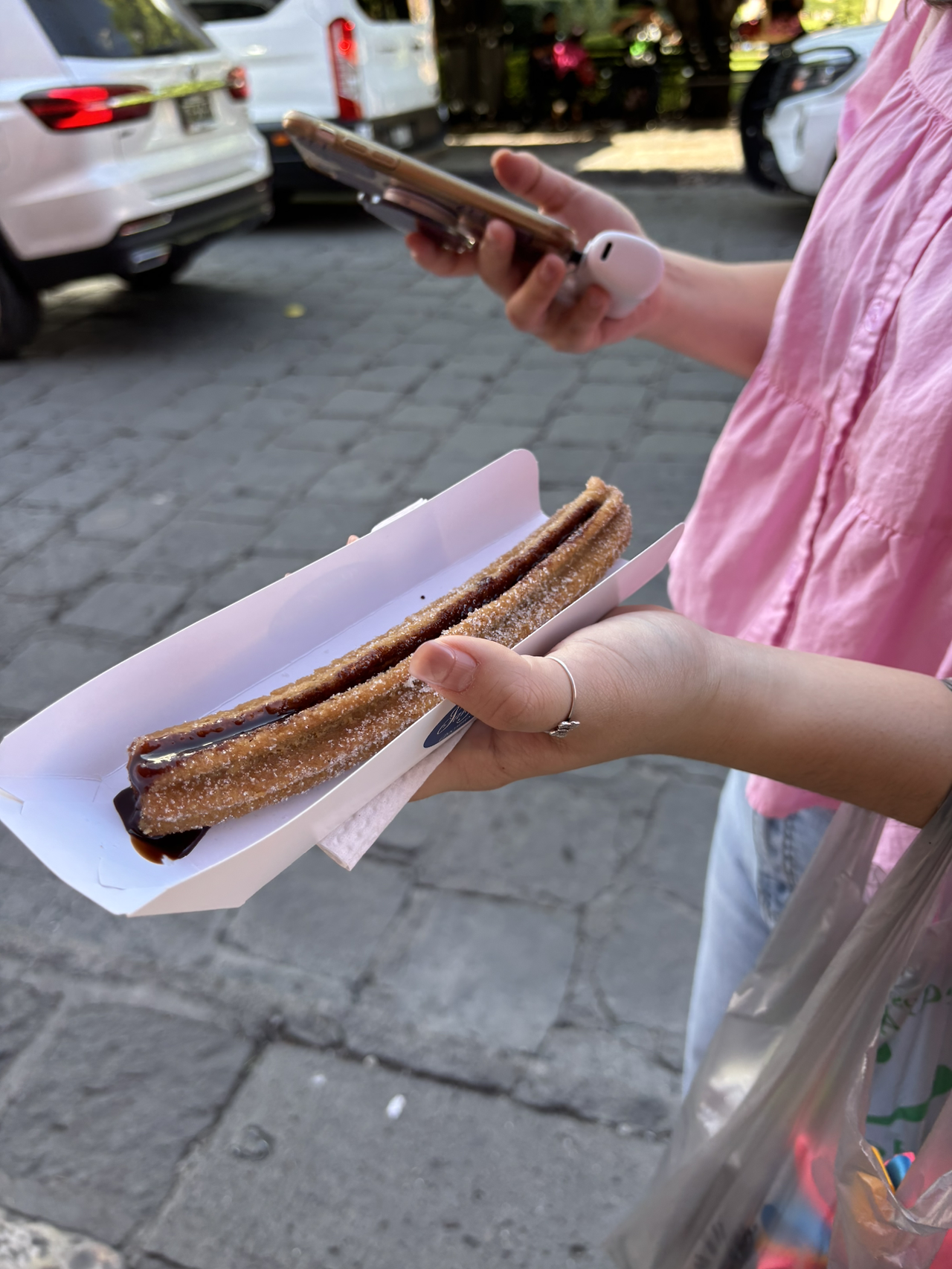 우리는 각자 취향껏 아아와 함께할 간식거리를 준비했다. 츄러스 탐험을 포기할 수 없었던 J는 산미겔데아옌데의 츄러스 맛집인 “Chocolates y Churros San Agustín”에서 초코츄러스를 테이크아웃했고, 나는 유럽여행 때 자주 봤던 “Amorino”에서 젤라또를 샀다.