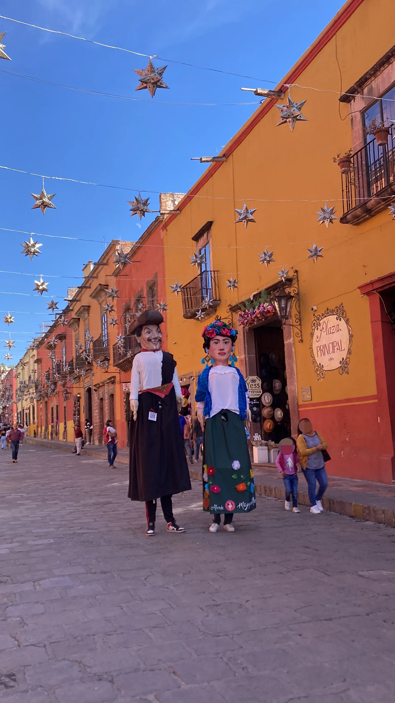 그렇게 받아든 도리토스 봉다리를 들고, J가 미리 봐두었던 광장으로 이동했다. 이동하는 길에 커다란 인형 두 개와 마주쳤는데, 이 둘은 오후 내내 산미겔데아옌데 거리를 돌아다니는 것 같았다.