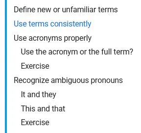 아래 예시처럼, 처음에 'Protocal Buffers'라고 지칭한 대상을 뒤에서는 'protobufs'라고 사용하면 안 된다.