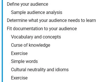 good documentation = knowledge and skills your audience needs to do a task − your audience's current knowledge and skills