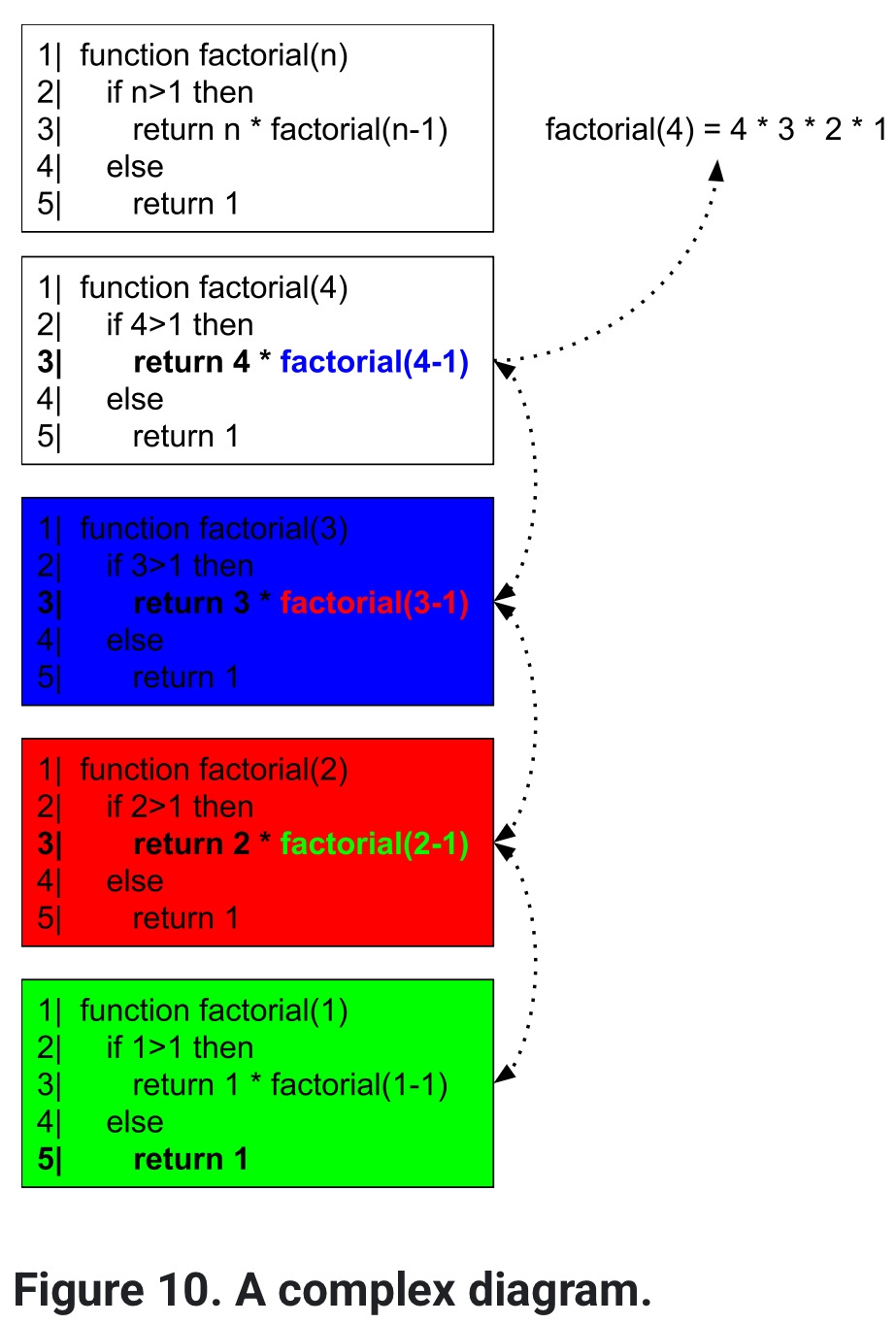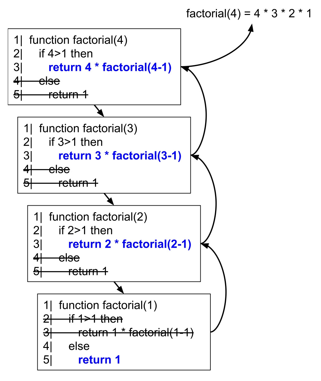 ‘factorial(4) = 4*3*2*1’ 이 부분은 화살표로 이어지는 것이 아니라 별도 텍스트 상자 등으로 삽입되어야 할 것 같다.
