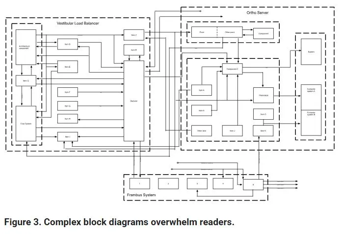 다이어그램은 여전히 복잡하다. 한 문단 이상의 내용을 담고 있다. 따라서 불필요한 정보를 줄이거나 라벨을 추가함으로서 의미를 명료하게 할 방법을 생각해보라.