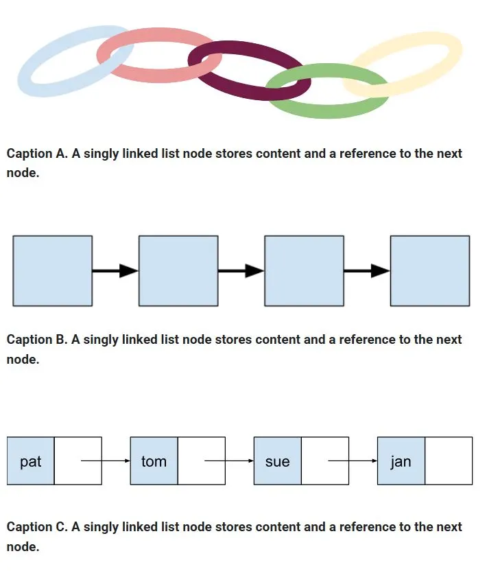A는 예쁘고 시선을 끌지만, 캡션의 내용을 잘못 전달하고 있다. "single-linked"이지만 앞뒤 모두를 가리키는 것처럼 오해할 소지가 있다.
