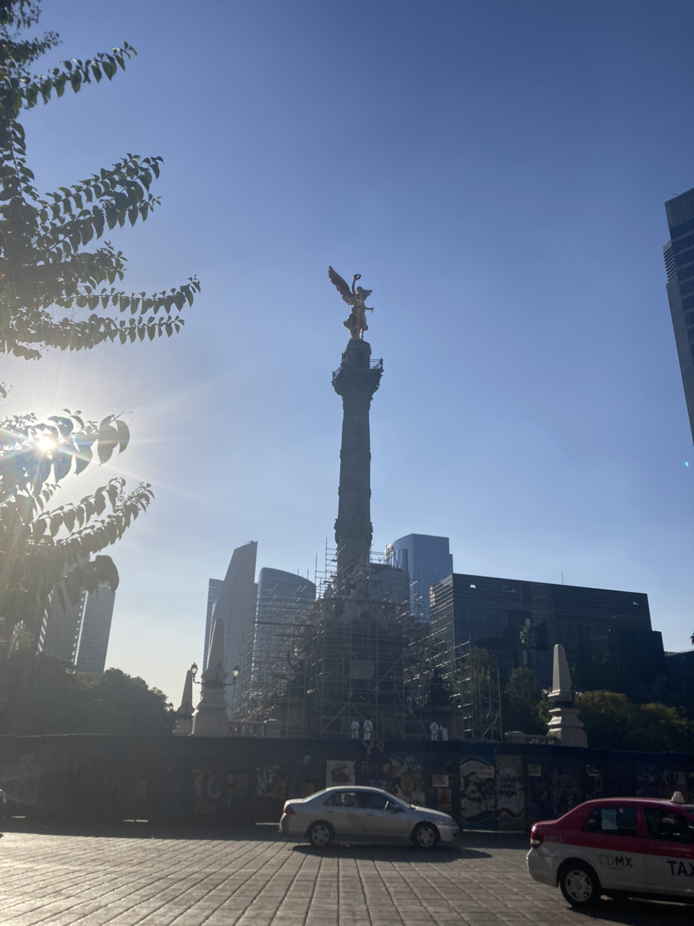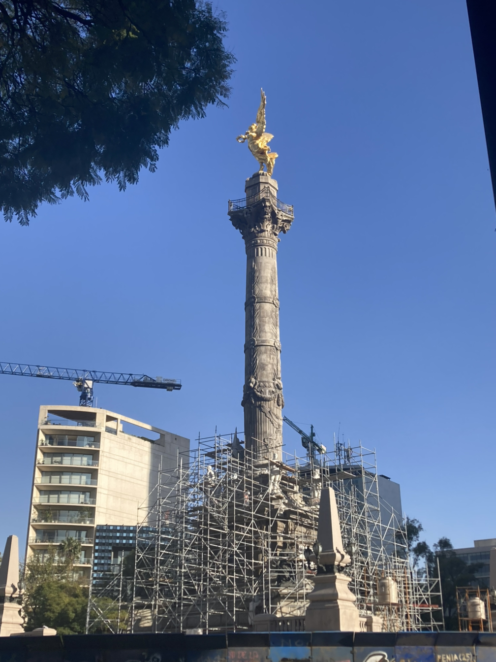 멕시코에 도착해서 처음으로 방문한 관광스팟은 레포르 (Reforma) 대로 한복판의 "천사상 독립기념비 (Angel de la Independencia)"였다. 이 조형물을 중심으로 레포르마 대로가 멕시코시티를 가로지르고, 도로 양 옆으로는 수많은 고층 빌딩들이 줄지어 서 있다. 우리나라의 종로나 광화문이 떠오르는, 말 그대로 도심 한복판이었다. 기념비는 멕시코시티의 상징 중 하나로, 만남의 장소로도 많이 쓰인다고 한다. 우리가 머문 숙소도 이 천사상에서 도보 5분 정도 떨어진 곳이었기에, 멕시코시티에 머무는 내내 수도 없이 이 앞을 지나쳤다. 아쉽게도 공사 중이긴 했지만.
