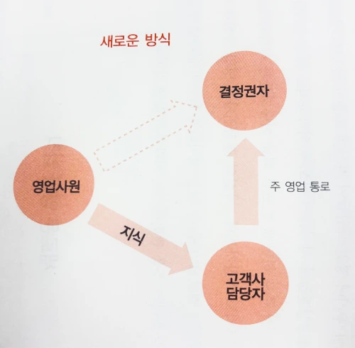 결정권자는 조직 전반의 지지를 원하기에, 공급사에 대한 인식이 전반적으로 우호적이어야 한다. 결정권자가 누구인지 아는 것 보다는, 최초 미팅 직원부터 설득해 나가야 한다. 즉, 간접적인 통로를 이용해야 하는 것이다.