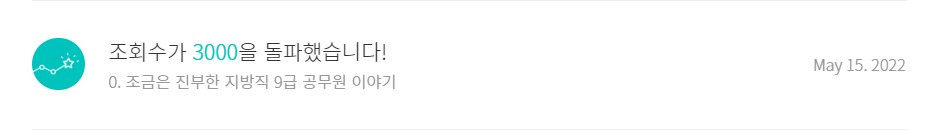 알림도 1년 반 동안 확인하지 않고 있어서(이건 단순히 별 관심이 없었어서요.) 뒤늦게 제가 올린 글의 조회수가 3000을 돌파했다는 소식을 보았습니다. 흠, 이 알림을 보니 어차피 면직할 거였는데 계속 브런치에 글을 올렸으면 뭐가 되어있지 않았을까, 싶기도 하고요. 이건 전직 공무원의 신포도입니다.