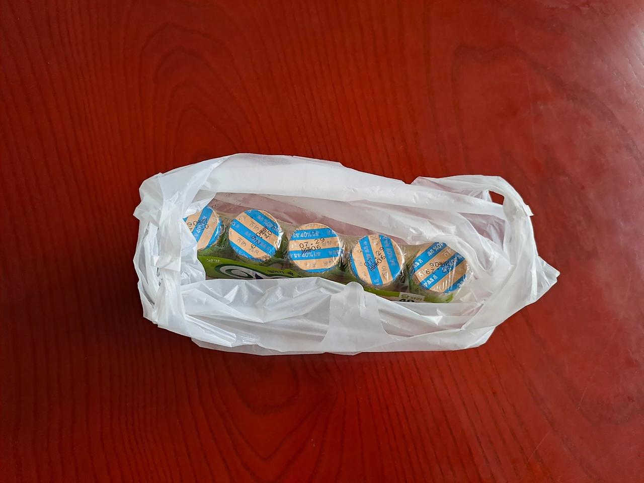 계단을 한 두 발 내려오는데 계단 한쪽 구석에 작은 봉지가 보인다. 살짝 열어보니 요구르트가 가지런히 담겨 있다.