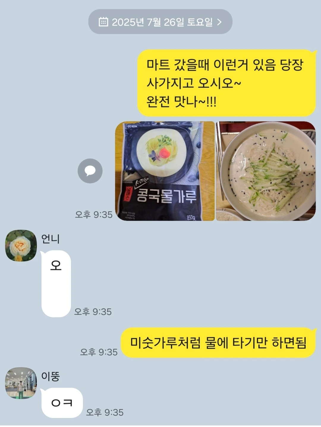 남편의 마지막 말로 평가는 이미 끝이다. 남편과 큰아이가 콩국수를 맛나게 먹는 한쪽 옆에서 난 톡을 하나 올렸다. 언니와 동생에게도 유익한 정보가 될 거 같았다.