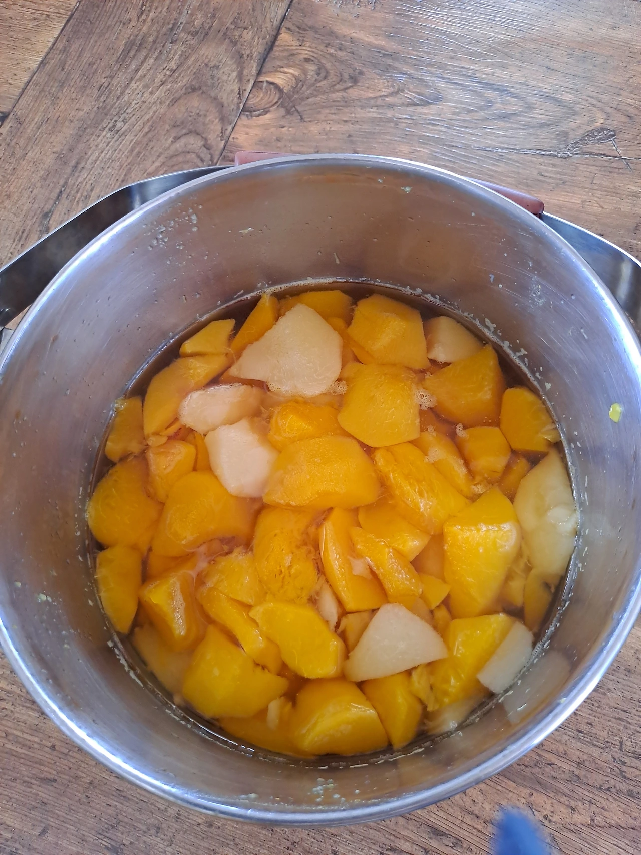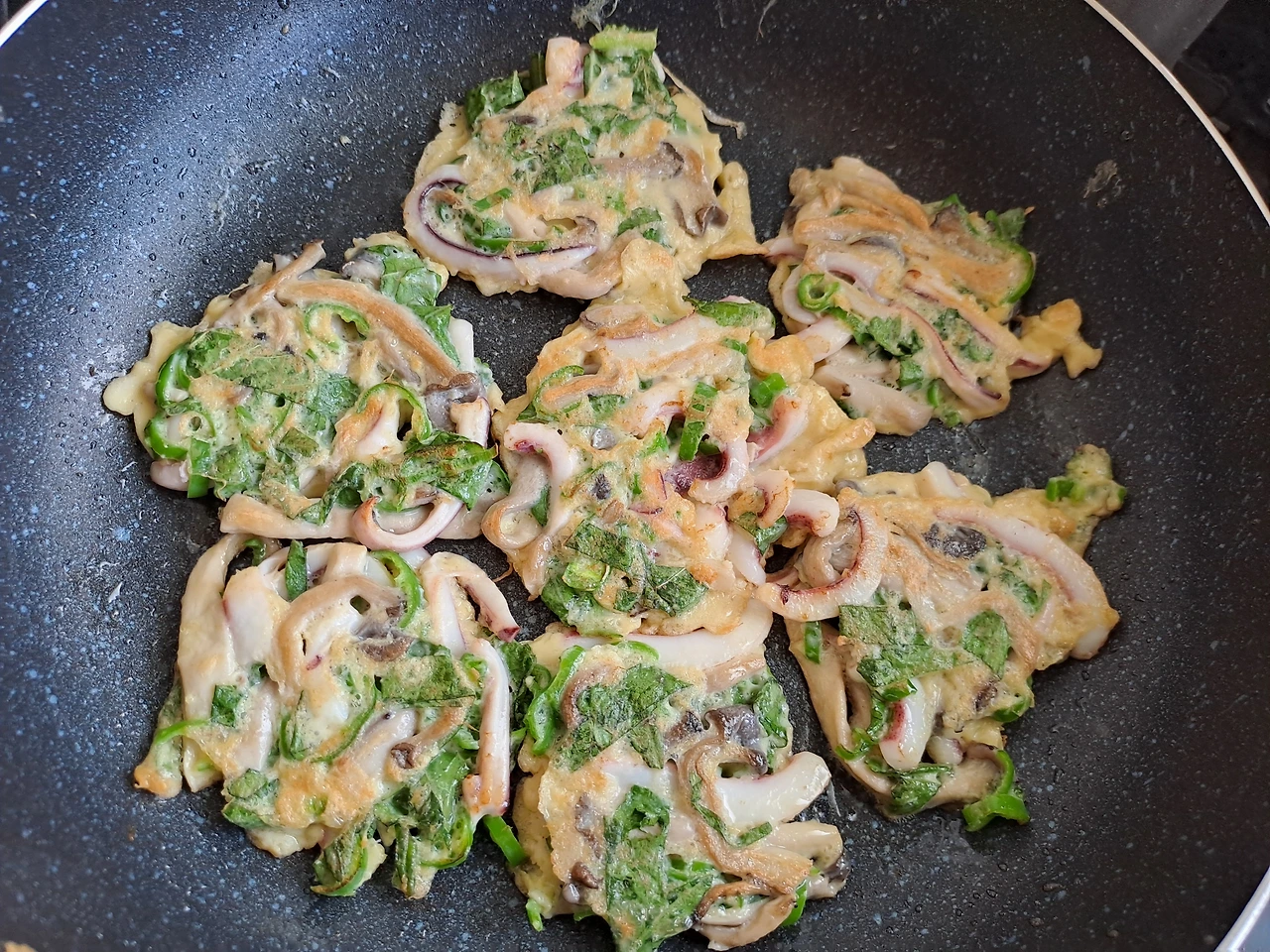 오전 내 불 앞에서 이것저것 해 놓았다. 작은 아이를 위한 복숭아 통조림을 해두었고 남편과 큰 아이가 좋아하는 오징어 전도 부쳐 두었다.