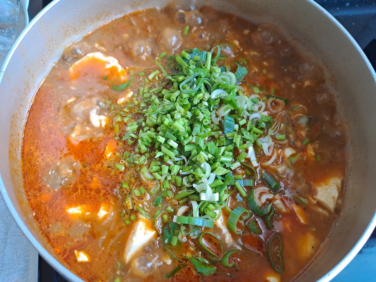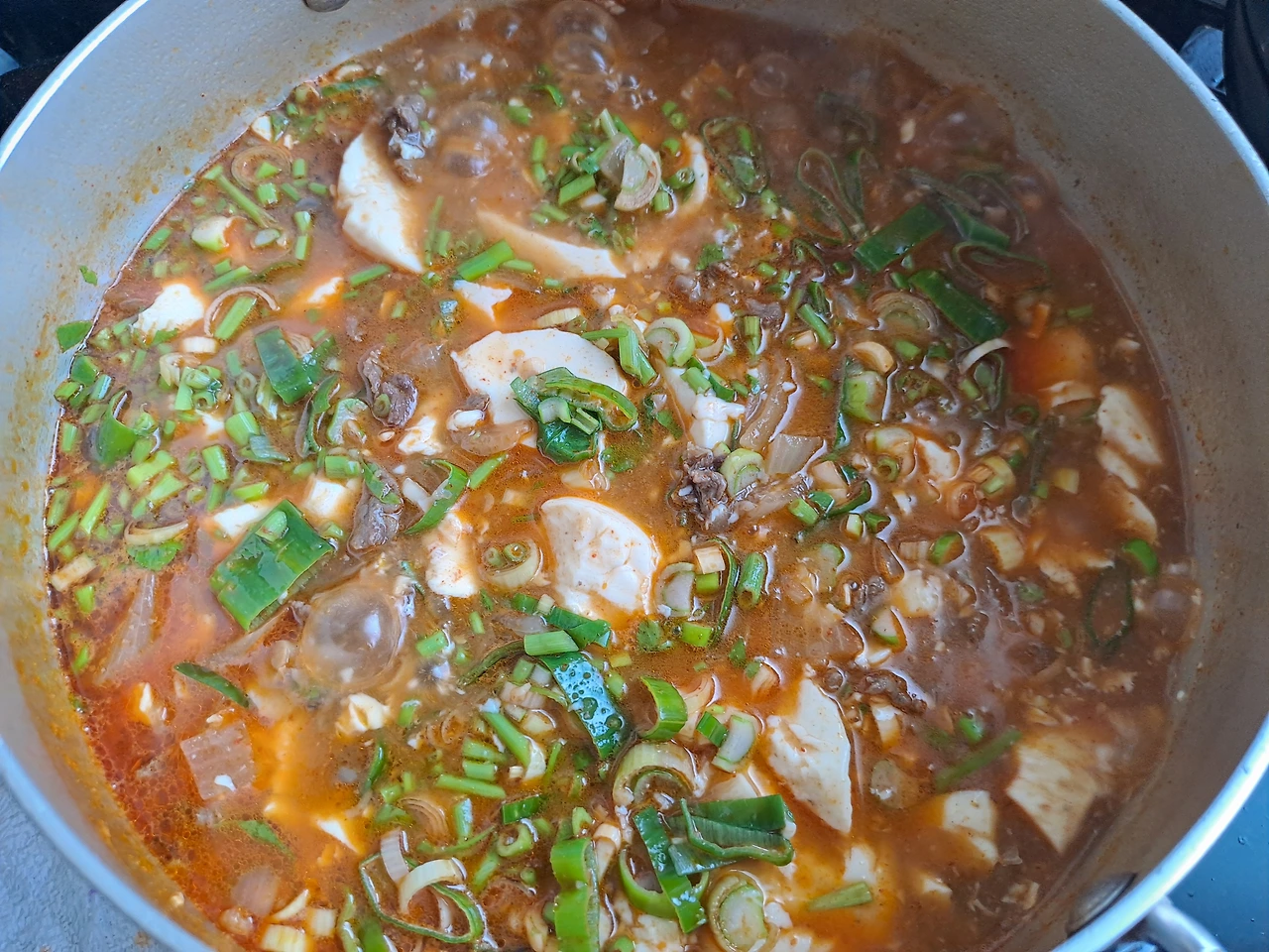 마지막으로 완성한 순두부찌개까지. 오늘 왠지 뿌듯하다. 아직도 남은 체력에 감사한 날이다.