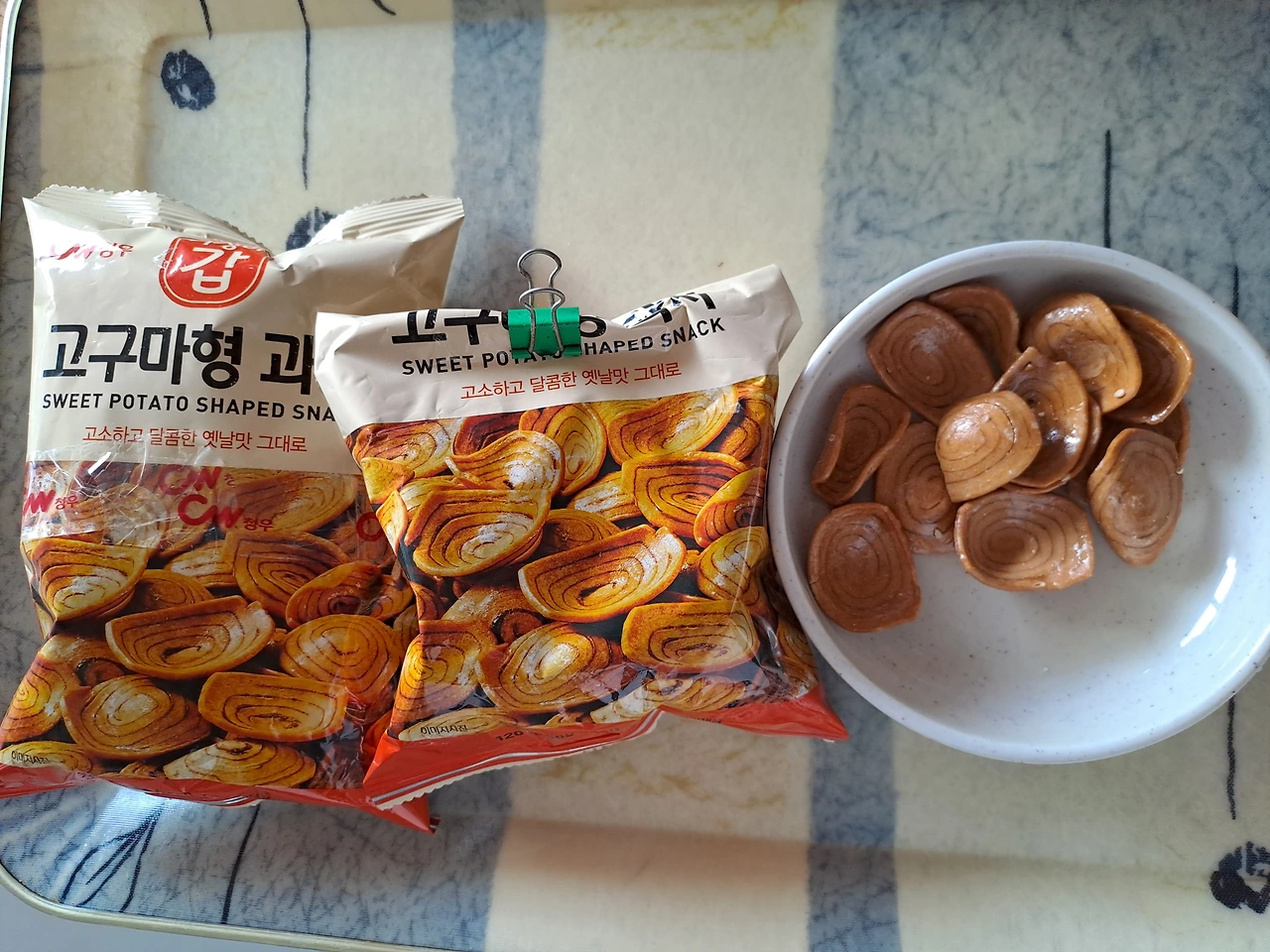 내 눈엔 달팽이 모양인데 어딜 봐서 고구마 모양 같다고 생각했을까. 한두 개만 먹으려 했는데 손을 멈출 수가 없었다. 어쩜 이리도 딱 내 취향일까! [청우 식품] 감사합니다! 주식이라도 사고 싶은 심정이었다. 자극적이지도 않은 적당한 단맛에 몇 개 더 먹어도 왠지 혈당이 많이 안 오를 것 같은 느낌! 아주 적당한 정도로 씹힐 때 느껴지는 단단함이 나의 씹는 욕구를 해소시켜 주는 것이 아닌가! 게다가 가끔 씹히는 참깨의 고소함은 또 어찌하란 말인가. 한 가지 단점을 찾으라 하면 참지 못하고 계속 입에 주입한다는 것이다. '이래선 안돼.. 이래선 안 되지..' 하면서 어느새 욕구가 사그라질 때까지 먹은 어제~!! 망했다. 녀석의 포로가 되어버렸다. 남편에게 말해서 마트 갈 때 사다 달라고 부탁했다. 내 입으로 과자를 부탁하다니! 그나저나 씹는 욕구가 이토록 근본적인 행복감을 안겨주는지 몰랐다.