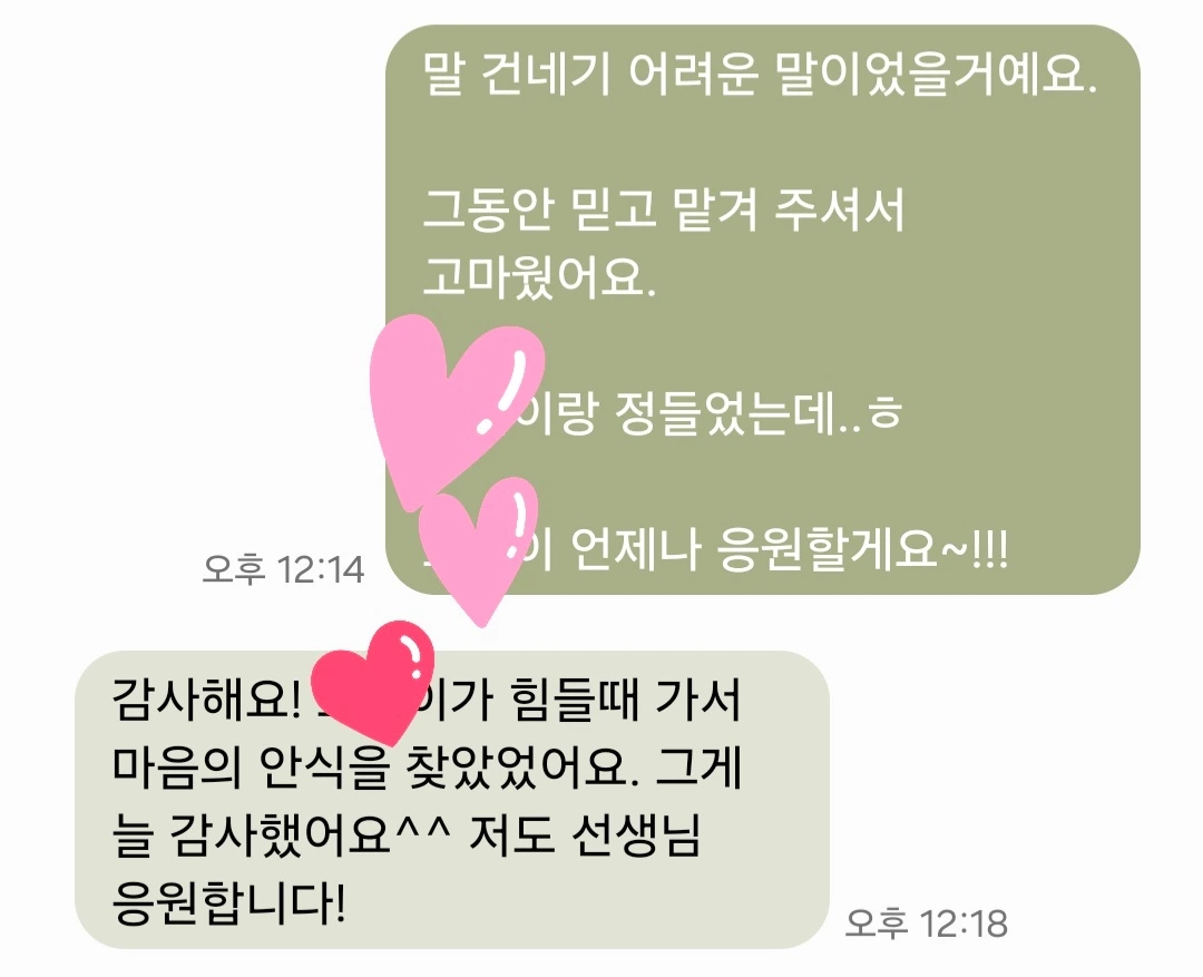 그래도 초기에 가졌던 수학에 대한 두려움 같은 것은 어느 정도 극복했으리라 믿고 싶다. 자신감을 어느 정도 장착했으니 이제는 그 바탕 위에 노력의 불씨를 지피고 동력을 스스로 내야 할 것이다. 그 아이가 해낼 수 있을까.. 잘 해내길 바란다. 헤어짐이 아쉽지만 더 나은 선택일 수 있다고 믿어보자.