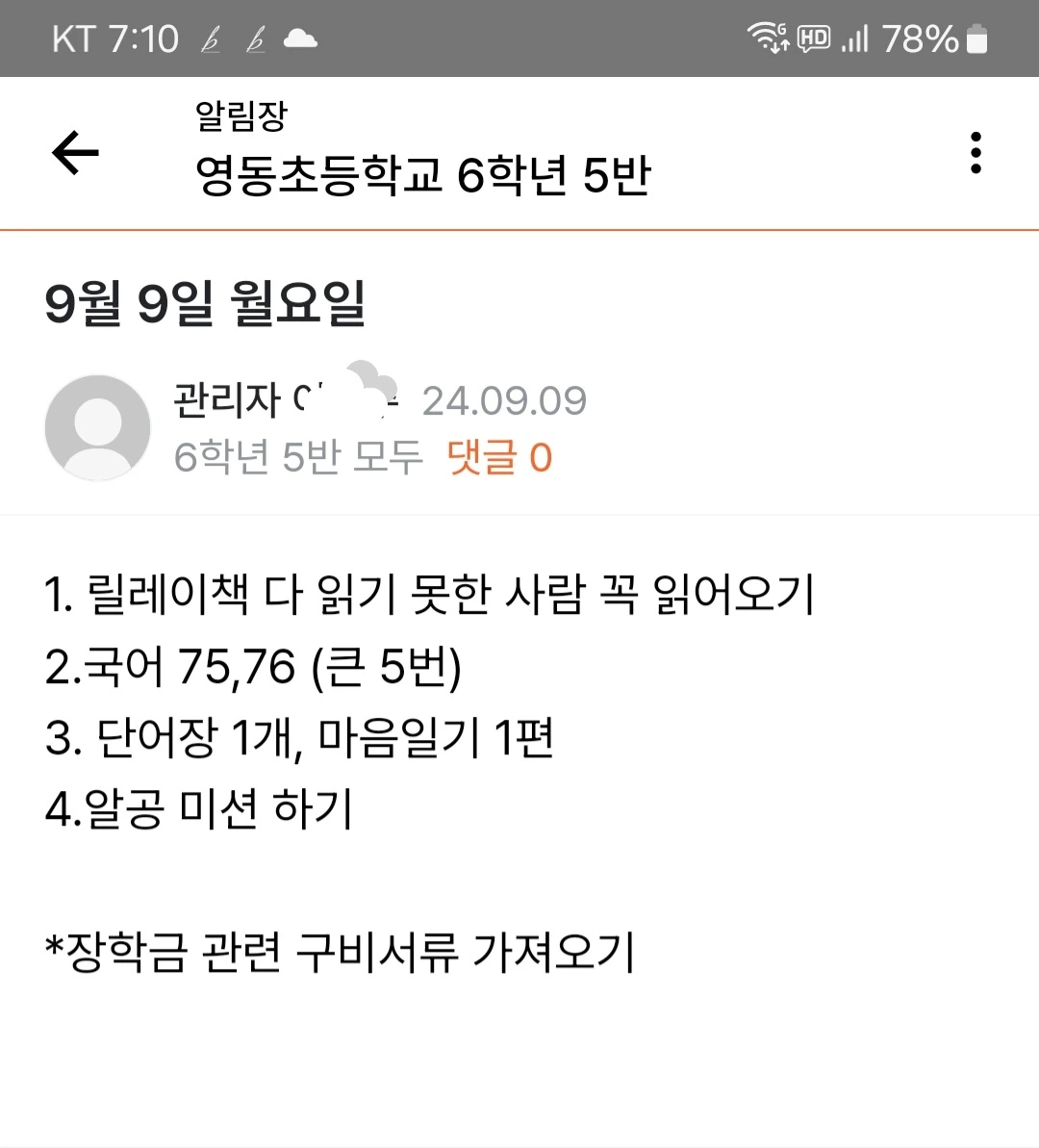 해야 할 일을 스스로 해내는 것. 녀석은 내게 가랑비에 옷 젖듯 신뢰를 심어주고 있다. 학교 다녀와 계속 폰만 보고 대부분의 시간을 보내는 것 같지만 그 사이사이 내가 알지 못하게 본인이 해야 할 과제를 조용히 수행하고 있었던 것이다. 내가 따로 과제를 확인하는 일은 없게 되었다. 어떨 땐 알림장을 건성으로 보기도 한다. 녀석을 믿어줘도 되겠다. 한없이 믿고 싶다. '믿는 만큼 자란다'는 말을 믿으련다.내 아이가 믿어 주는 만큼 분명 자랄 것이니까.
