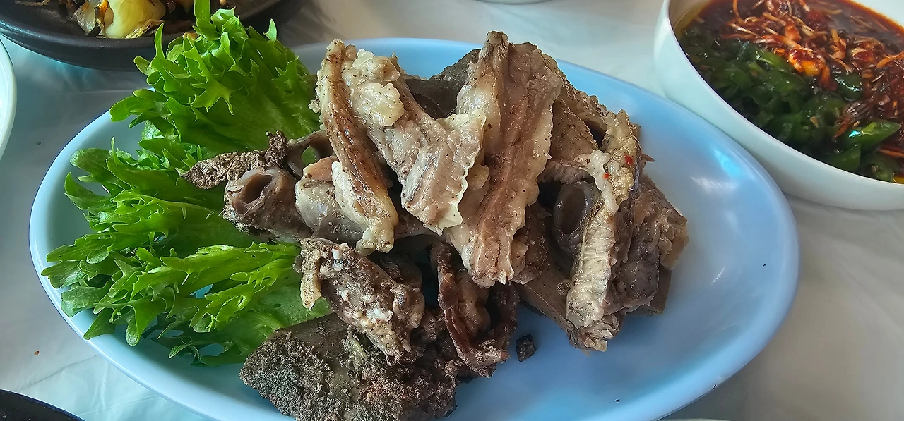 “염소 부속구이요.”