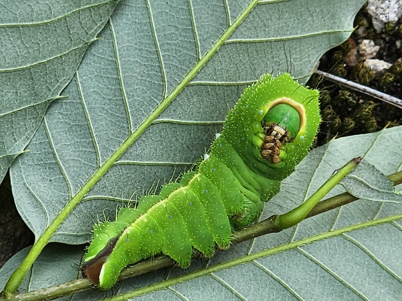 서론이 너무 길었습니다. 작설하고 지금부터 나비들과의 한방살이 이야기를 시작하겠습니다. 불편한 동거가 시작돤 건 5년전으로 거슬러 올라갑니다. 20년 8월 말, 농장 풀베기 도중 감나무잎새에 매달린 애벌레 한마리가 녹슨 레이다에 포착돤게 그 인연의 시작이었죠. 일단 사육해보기로 마음먹었는데 감감했습니다. 사육은 처음이고 공부해본적도 없기 때문이죠.