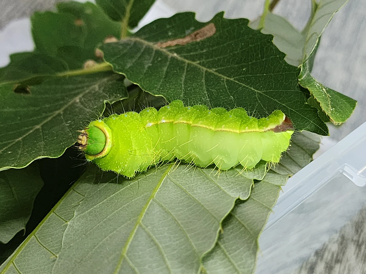 다행히 식성은 그리 까다롭지가 않았습니다. 낙엽성 참나무 종류라면 아무거나 잘 먹었고 설사도 하지 않았습니다. 똥 치우기가 귀찮긴 했지만 그 정도가 내 의지를 꺾을 순 없었죠. 며칠이 지나더니 식성이 무자비해지기 시작합니다. 이팔청춘인가 봅니다. 물론 저도 그런 시절이 있었죠. 큰밥그릇 두그릇을 해치워도 그새 배가 고팠던 2십대 질풍노도의 시기. 폭풍흡입이 계속됩니다. 냉장고에 싱싱한 나뭇잎들을 갈무리해 두었던 건 신의 선택이었습니다.