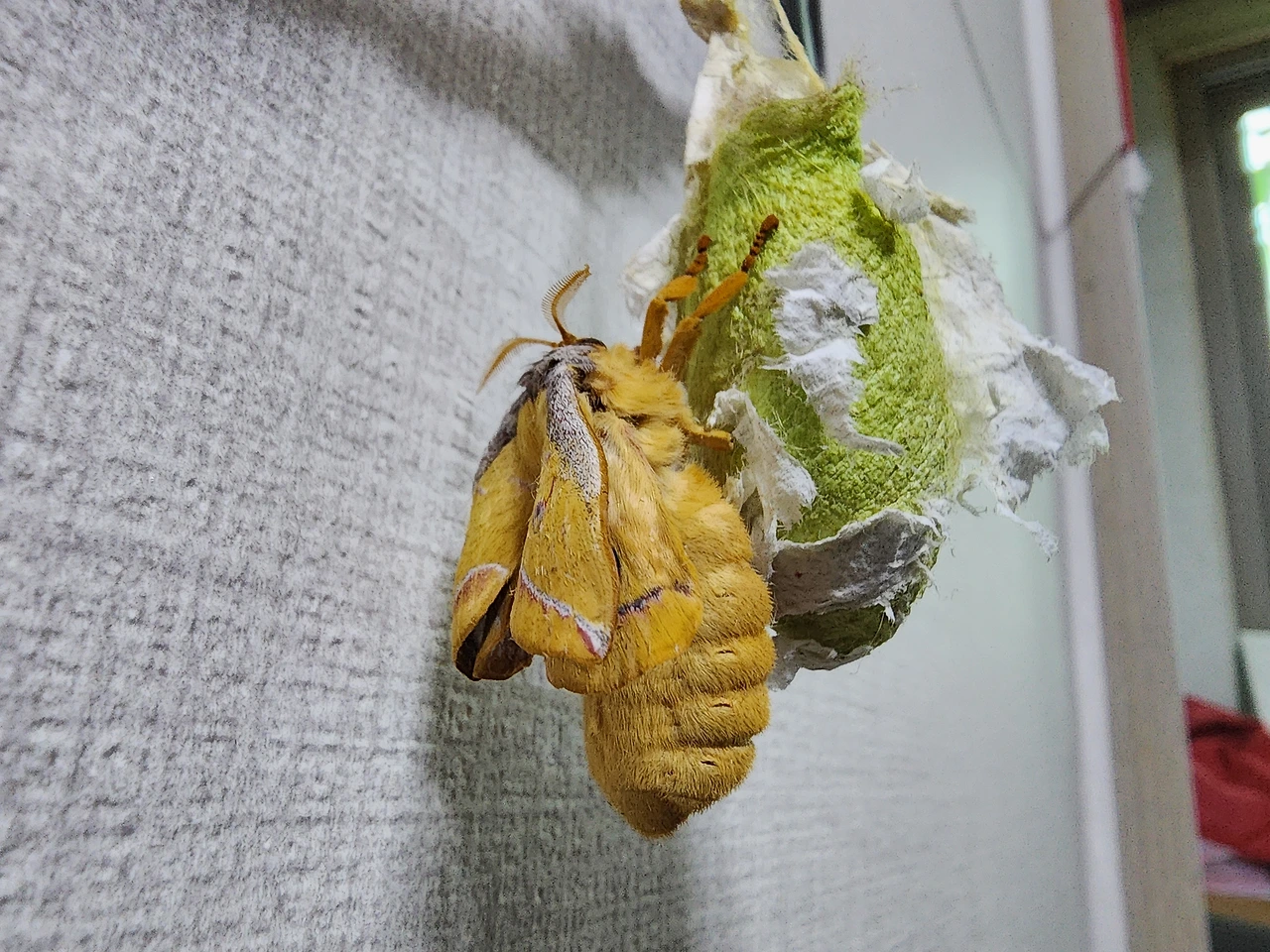 그렇게 오늘을 마치고 퇴근했습니다. 저녁 먹다말고 내 녹슨 레이다에 포착된 건 미세한 움직임. 고치가 간헐적으로 출렁거립니다. 이상 징후 발견. 비상상황입니다. 전 처음이라서 어리둥절 할 수 밖에. 급하게 카메라를 찾습니다. 어디있더라. 아하. 그러니까 차에 놔두고 온거로군요. 꿩대신 닭의 심정으로 스마트폰카메라를 꺼내들었습니다.