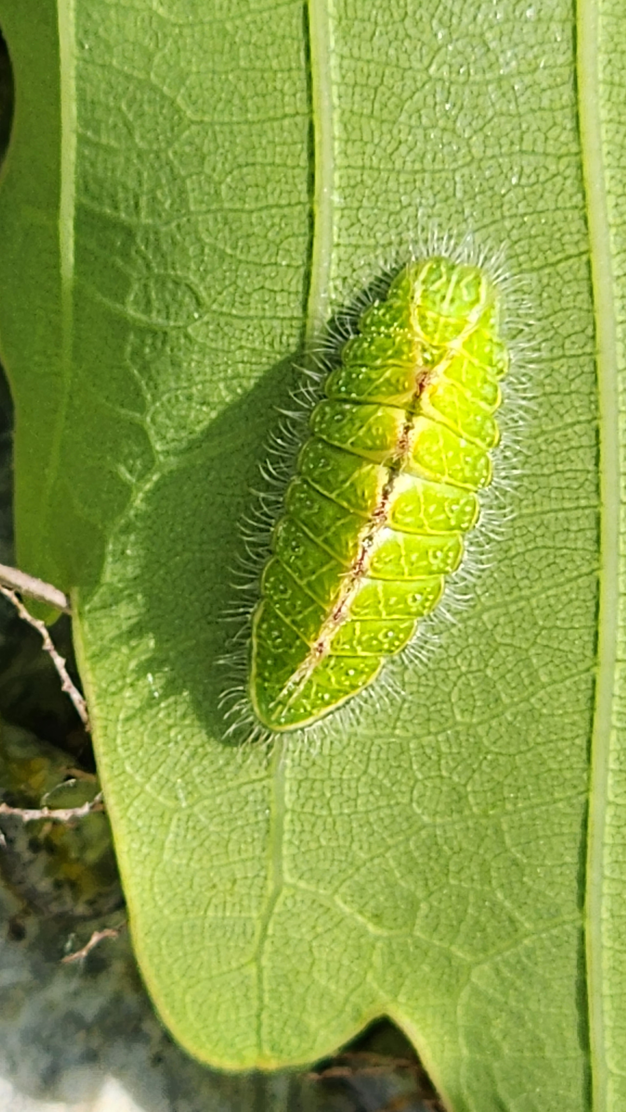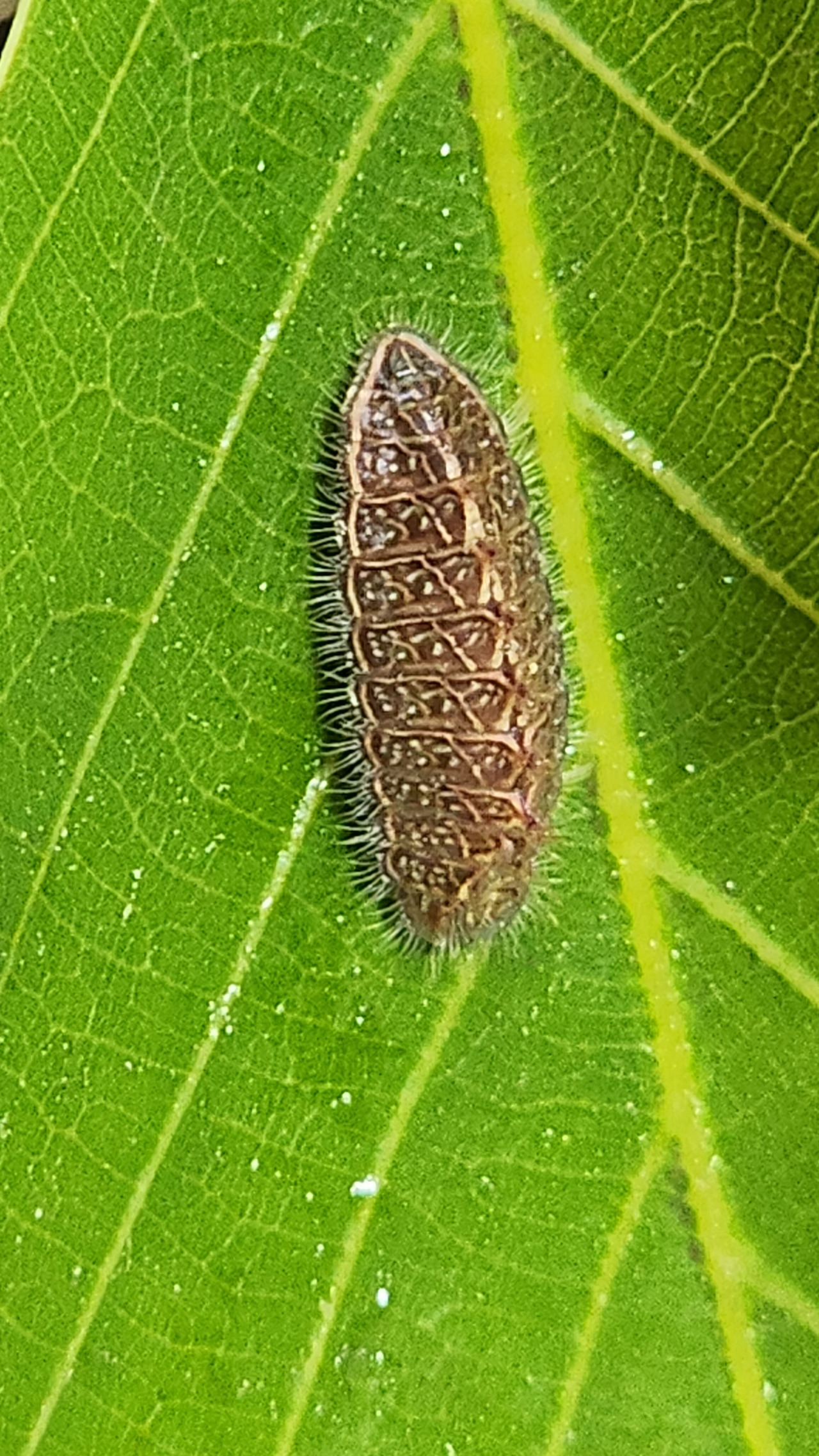 내 마음에도 어느새 숨이란게 들어와 있었다. 아름드리 신갈나무 한그루가 눈에 띈다. 이파리들이 구멍이 송송이 뚫려있어 뒤집어 보았더니 살보시한 흔적들이 여럿 감지된다. 그 사이 갑자기 나타난 꾸물이 한말이. 누굴까. 쐐기나방 애벌레로 치기엔 약 2프로 정도가 부족하다. 데려갈까 말까. 올라가다가 아쉬움에 다시금 되돌아왔다. 그렇게 우연스레 다가온 그녀와의 인연. 카페에 검색해보니 긴꼬리부전나비 종류라 한다.