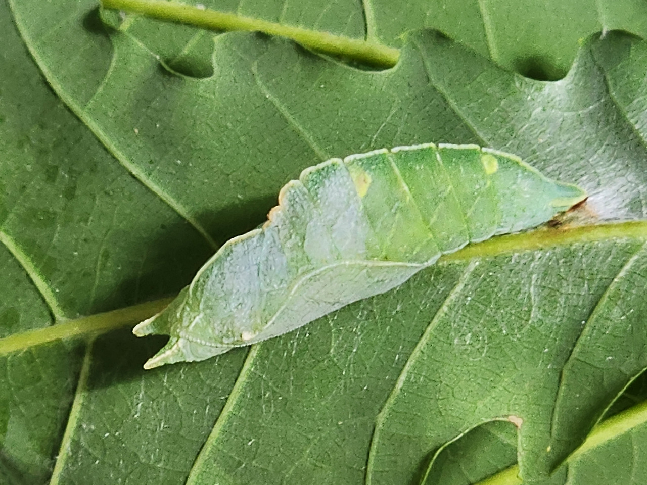몇 번의 탈피과정을 거치더니만 먹는것조차 사치스럽다며 그만 식음을 끊어버린 그녀. 아침 일어나보니 사육통 벽에 딱 달라붙어 용화가 진행중에 있었다. 그리고 뼈를 깎는듯한 변태의 순간이 그녀를 기다렸다. 기다리는 난 점점 애가 탄다. 가슴을 쓸어 내리기를 몇 시간째. 조마조마했다. 용화과정에서 갑자기 생장이라도 정지되어 버린다면 어쩌나. 난 사육통을 깨끗이 청소해주며 그져 기도했다.