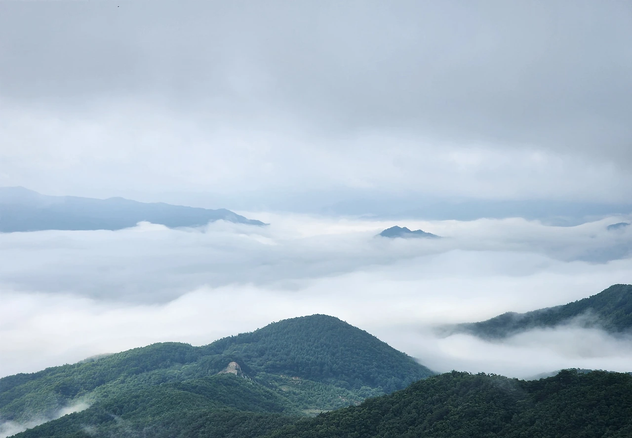 어느새, 대간도 사위가 밝아져 왔다. 지난밤처럼 어스름이 물러간 자리엔 붉은 여명도 아니고, 그렇다고 화려한 일출도 아닌, 온 들판과 산야가 은은한 운무로 짙게 깔리고 있었다. 마치 신선이라도 된 냥, 난 태평양 어느섬에 홀로 갇혀 망망대해를 바라보고 있는 듯한 착각속에도 빠져본다. 그리고, 새벽 운무는 내가 가는 방향을 향해 유유히 흐르는 중이었다. 다가설 만하면 사라지고 또 눈에 사라졌다 하면 어느새 다시금 다가왔다.