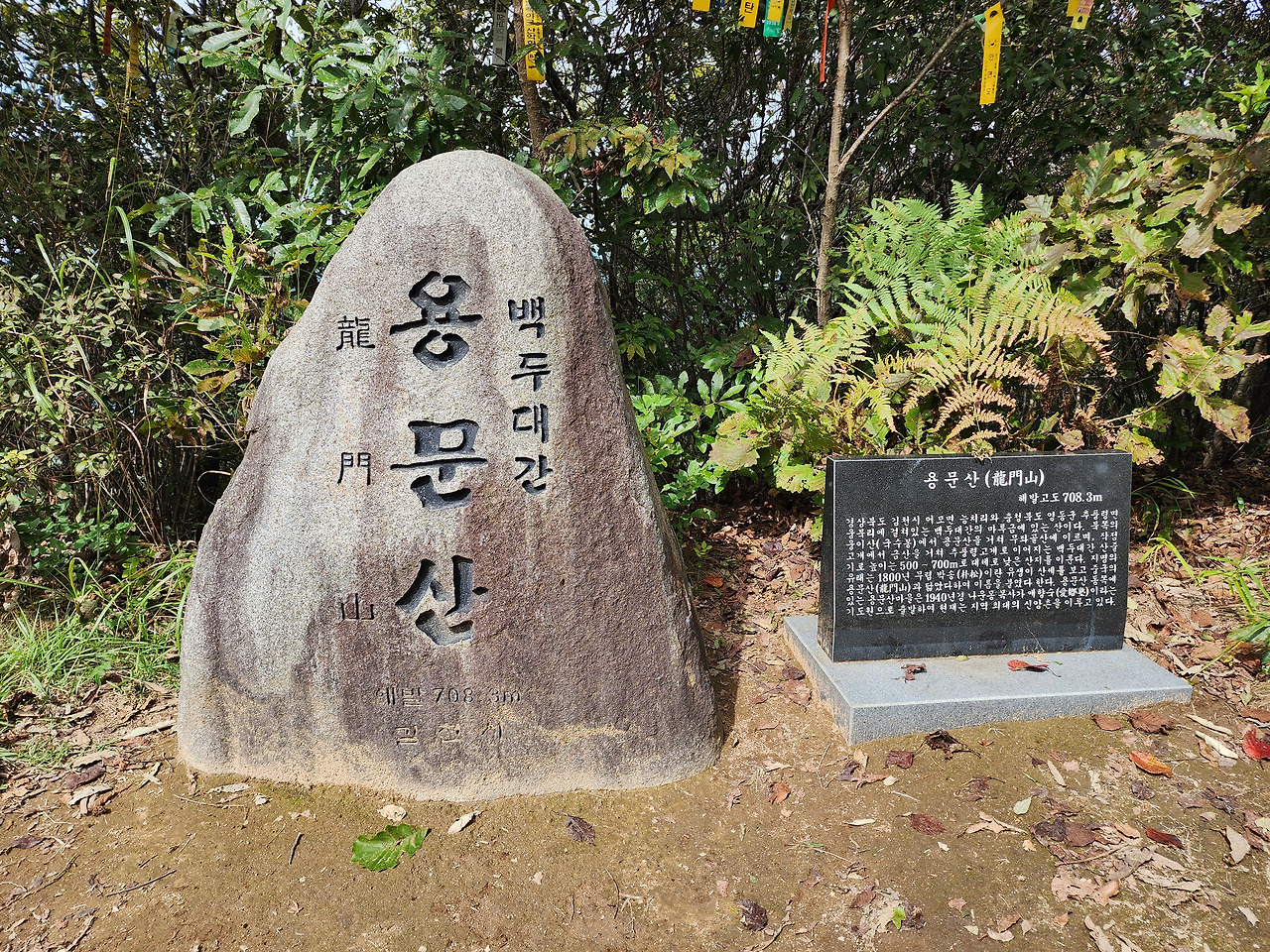 착잡한 마음 잊어보려 애쓰며 걸었다. 마치 무시무시한 쇳덩어리 하나를 짊어지고 걷는 느낌이었다. 산도 아픔을 느끼는 것인지 의문에 의문을 품으며 걸었더니 용문산이었다. 해발고도 700미터가 조금 넘는 산이지만 오늘따라 누가 등뒤에서 배낭을 잡아 끄는듯 무겁고 또 힘들었다. 정상석은 온몸으로 격하게 날 환영해 주었다. 금산의 아픔 때문이었을까.