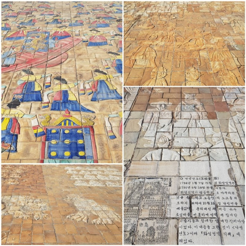 화성행궁 앞 넓은 광장 바닥에는 타일로 궁중의례를 묘사한 곳이 있다. 찾아서 꼼꼼히 읽어보면 당시 궁중의례에 대한 우리의 이해의 폭이 넓어진다.