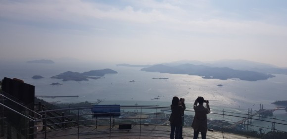 머무는 시간이 짧고 한눈에 한려해상의 경치를 다 담고 싶다면 케이블 카를 권한다.