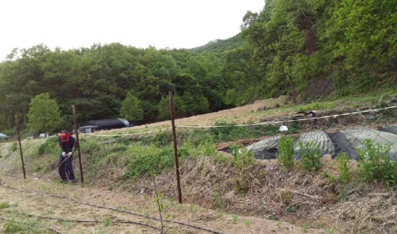 자형도 약칠 수 있는 기회만 노리면서 대기모드로 들어 갔습니다. 오후 강수량 1mm라는 예보를 보고, 트랙터를 몰고 사과밭에 약치러 갔습니다. 시간이 얼마 지나지 않았는데 트랙터 소리가 들리더군요. 기계가 있어 약을 빨리 치는구나 생각했죠. 트랙터에서 내린 자형이 멧돼지가 들어와서 사과를 다 따먹었다고 흥분하더군요. 그리고 약치는 것보다 울타리 보수가 우선이라면서 읍내로 그물망을 사러 갔습니다. 말로만 듣던 멧돼지 농작물 피해를 직접 목격하게 된거죠. 울타리용 망을 사서 집으로 돌아오자, 장대비가 쏟아지더군요. 멧돼지 덕에 약값을 번 셈입니다. 약을 쳤다면 이 비로 고스란히 씻겨나가 다시 쳐야 했을 테니까요.