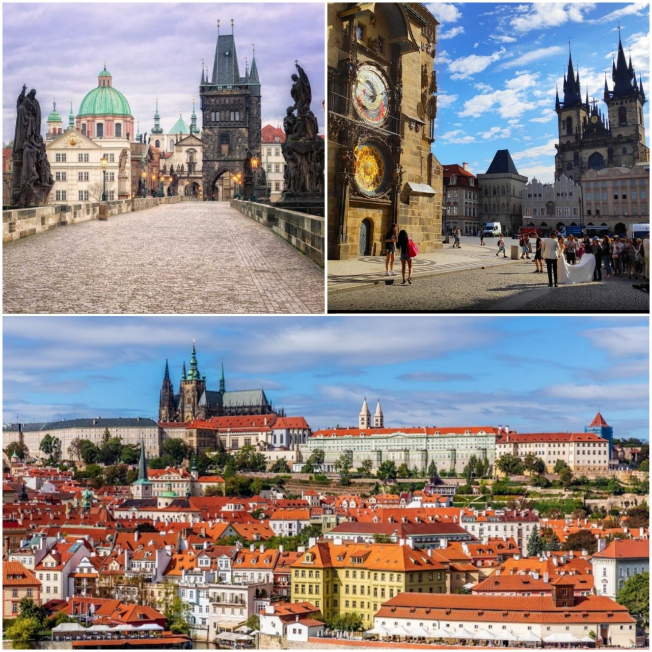 프라하성으로 이어지는 카를교에는 많은 조각상이 서있다. 만지면 행운을 얻는다는 조각상앞에 길게 줄을 선다. 세계 3번째로 오래된 것으로 아직까지 작동하고 있는 천문시계. 철탑