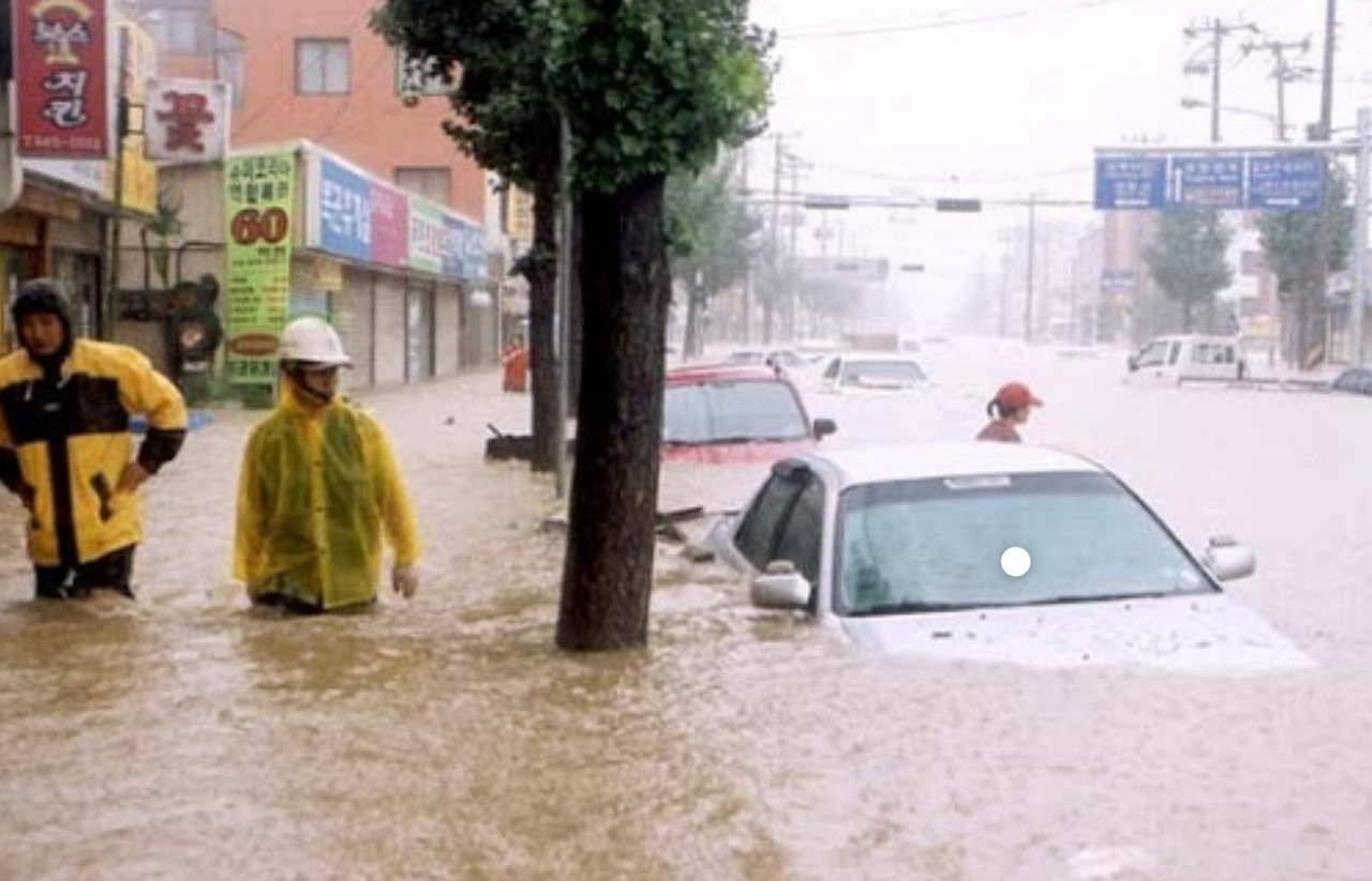 사람들은 하늘이 뚫린 듯 멈추지 않는 비에 어쩔 줄 몰라 당황해하며