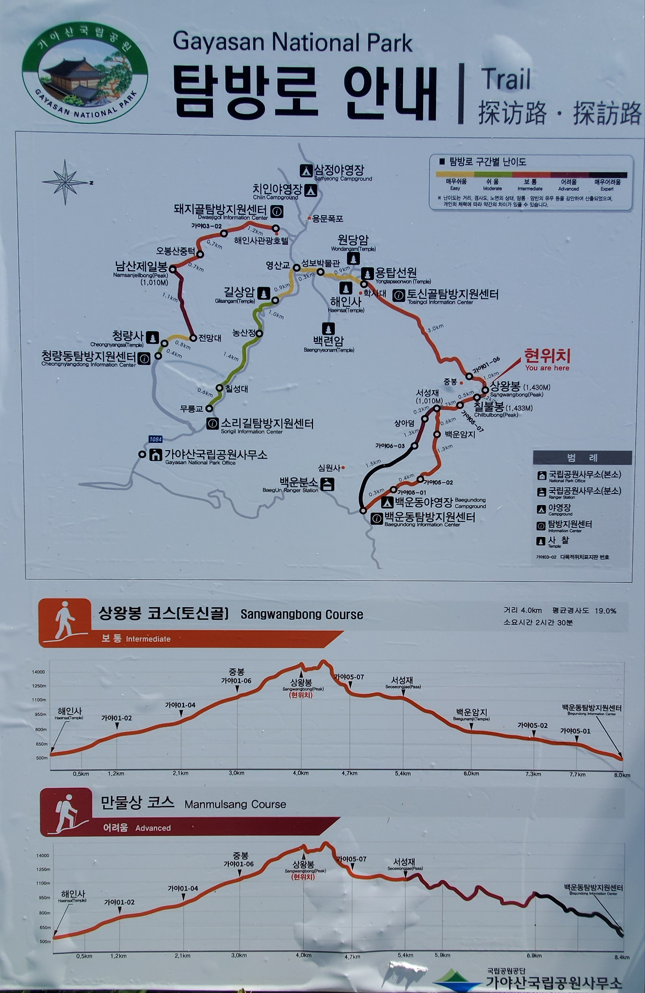 산은 완만하게 이어졌다. 푸른 나무들이 햇볕을 가려 주고, 계곡에서 흐르는 물소리가 방문객의 등산을 도왔다. 가볍게 산보하듯 걸음을 옮겼지만 조금씩 거친 숨을 내쉬게 되었다. 최근 식사량은 줄렸다고 하나 자주 간식에 손이 가고, 퇴근 후 운동은 하지 않고 소파에 앉아 넋을 잃고 TV 시청에 빠진 결과 확 찐자가 되고 말았다. 운동해라, 해라고 재촉하는 아내의 권유를 건성으로 무시했더니 확연하게 배가 솟아올랐다. 이번 등산에서 가야산 정상 상왕봉에 오르면 아내와 기념사진이라도 찍어야 하는데, 이 똥배를 어떻게 감출 수 있으랴?