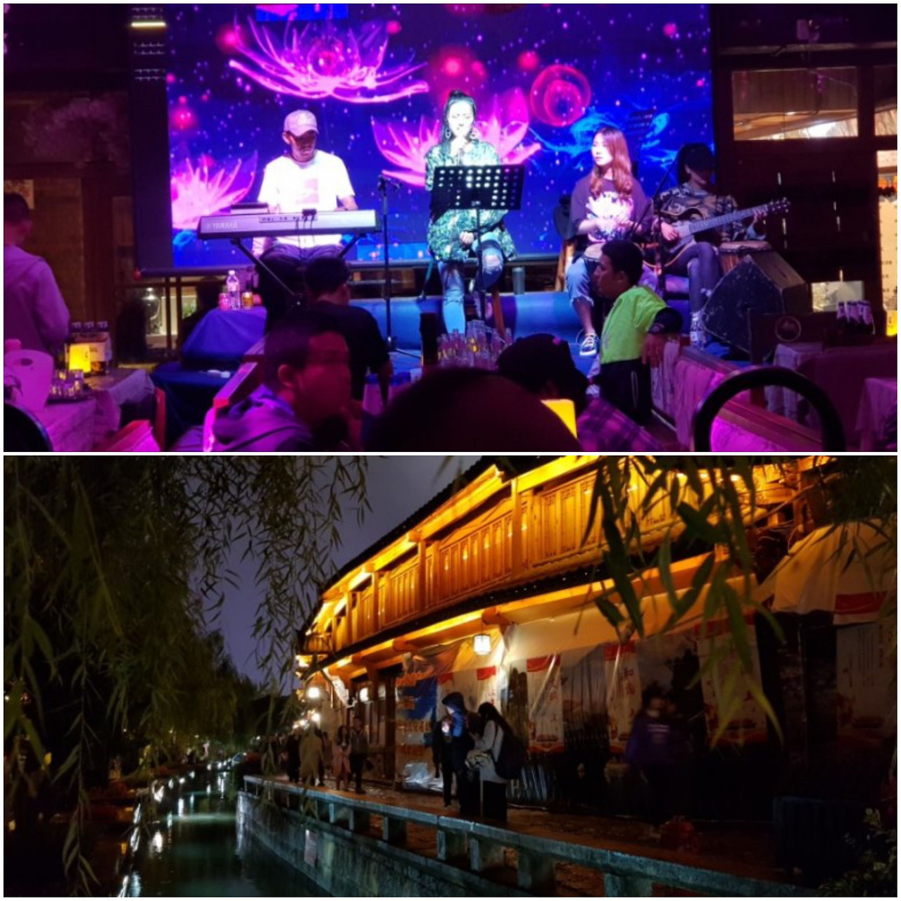고성야경을 보기 위해 다음날 야간에 다시 들렸다. 낮보다 더 활발했고 사람들이 더 붐볐다. 낮의 차분한 분위기와 달리 카페와 술집 거리가 화려하게 불을 밝혀 선남선녀들을 불러 모았다. 가게마다 중국인이 넘쳐났다. 가게 밖에서 노래와 춤을 엿보는 중국인들이 줄을 섰다. 곤명으로 돌아가는 비행기 시간에 쫓겨 젊은 가수 지망생들이 불러대는 노래를 감상하지 못하게 되어 안타까웠다.