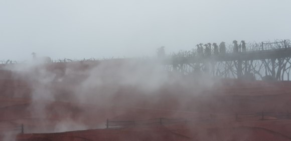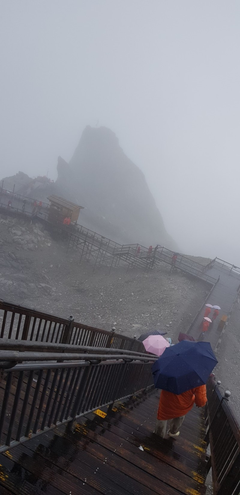 아침부터 비가 내리고, 설산을 오르는 입구는 안개로 자욱하다. 고산이라 추위를 막기 위해 파카를 빌려 입었다. 산소통을 옆에 끼고 케이블카를 타고 가파른 산등성이를 올랐다. 3km나 되는 거리를 빠르게 올라가는 케이블카 안에서도 숨이 가빠져 여러 번 산소를 흡입해야 했다.