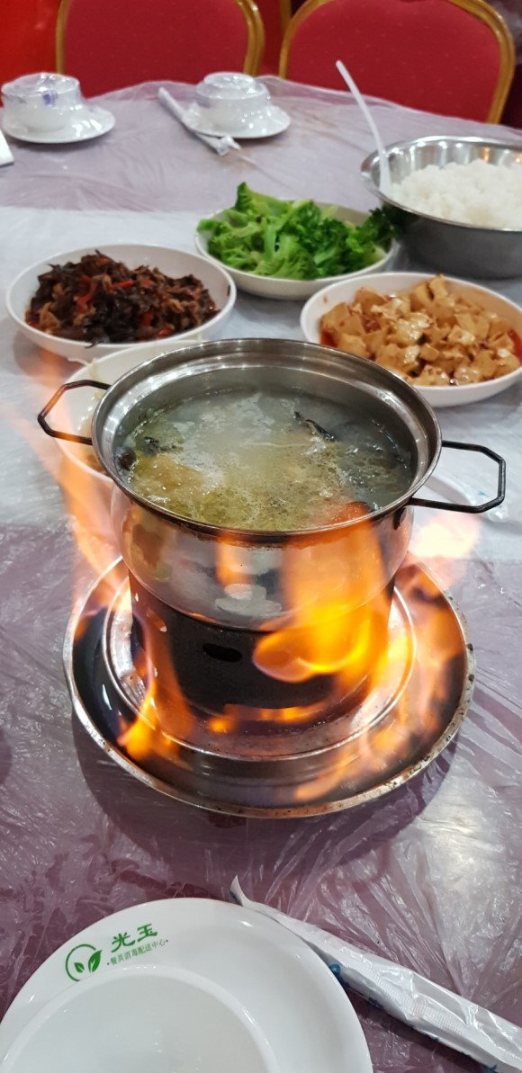 점심 식사로 먹은 토종 오골계탕은 육질이 쫄깃거리고 맛이 구수했다. 중국 닭에 토종이란 단어를 붙이니 조금 이상하다. 중국은 매 끼니마다 국물이 있는 탕이 나오는데 어제 저녁엔 야크 샤부샤부를 먹었다.