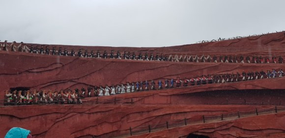 설산 옆 대규모 야외무대가 설치되어 있다. 아침부터 계속된 비가 내리는 중에 장예모 감독이 연출한 '인상여강쇼'를 보았다. 수십 마리의 말과 500여 명의 나시족 주민들이 마방으로서의 고단한 삶을 재현하고, 사랑에 실패하여 자살하러 떠나는 여자를 전송하는 전설 등을 보여 주었다. 대서사극에서 나온 문장 몇 개가 기억에 남는다. '우리는 신의 자손이다'. '우리는 바람의 형제이다'. '인생을 즐기자'. '술이 없으면 어찌 친구를 청하여 함께 즐길 수 있겠는가?'