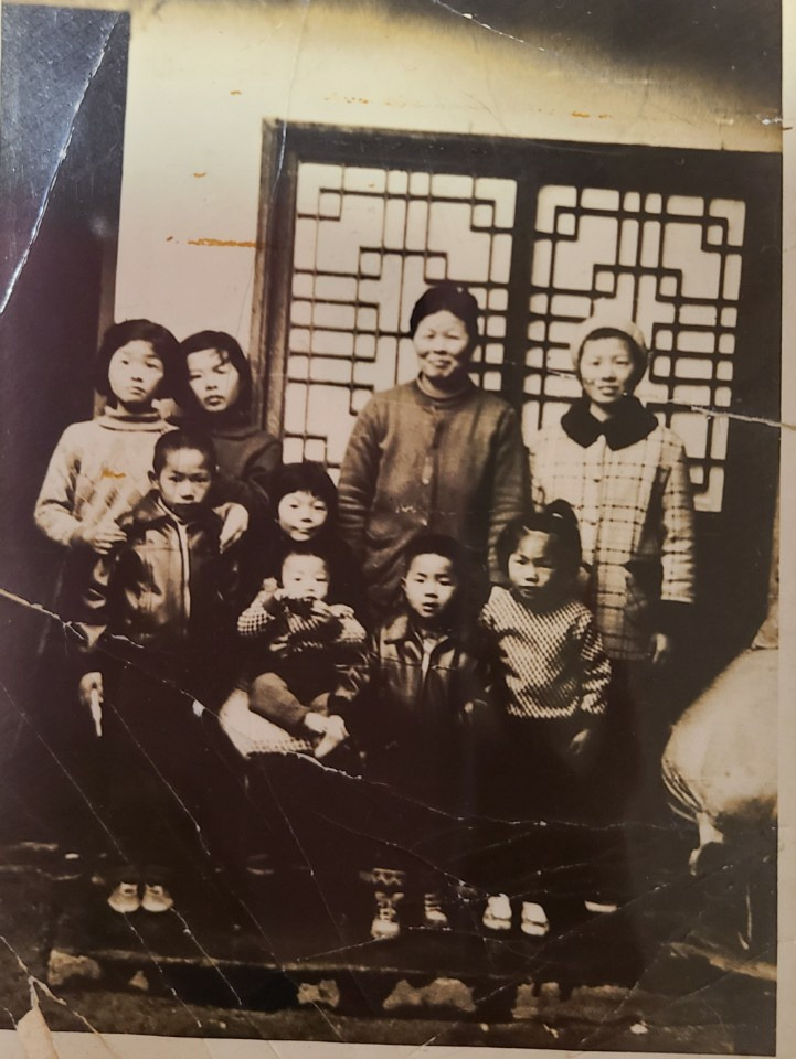 최씨와 아들과 딸들. 사진을 촬영하는 첫째 딸을 합쳐 모두 9남매