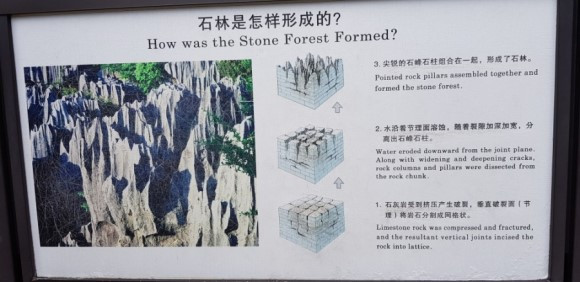 Stone Forest 석림은 바다가 융기되어 형성된 300평방 킬로미터가 넘는 대규모 카르스트 지형이다. 1930년대부터 개발되기 시작하여 주은래 서기장이 직접 개발을 주도한 뒤 2001년에 유네스코 등재된 세계문화유산이다. 일부만 개발되었는데도 유네스코에 등재된 유산으로서는 최대 면적이라고 한다.