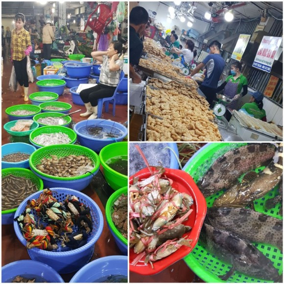 해외여행 중 제일 재미있는 것은 재래시장 구경이다. 하롱베이 구시장에도 두리안, 애플망고, 망고스틴 등 열대과일과 각종 조개, 한치 등 어패류가 싸고 풍족했다. 과일 가게에서 애플망고 1kg 8달러 달라는 것을 전통시장에서 2달러에 샀다.