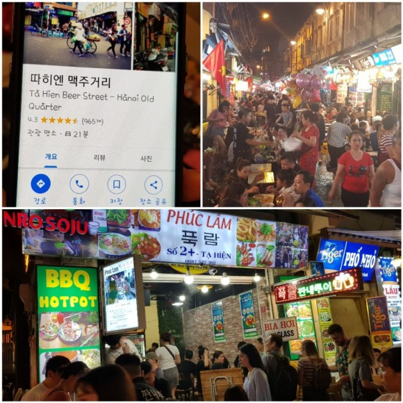 동쑤언 시장 옆에 있는 따히엔 맥주 거리엔 사람들이 넘쳐났다.