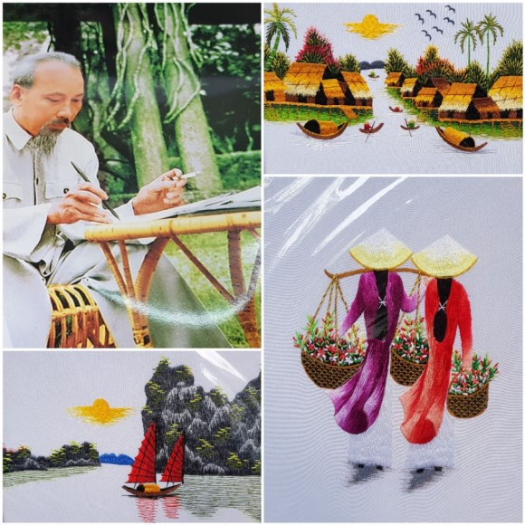 커플 트리라고 불리는 높이 솟은 야자수를 감싸 안은 감나무 밑에 있는 가게에서는 관광객을 대상으로 호찌민 사진, 음료수와 베트남을 상징하는 풍경이 담긴 자수공예품 등을 팔고 있었다.