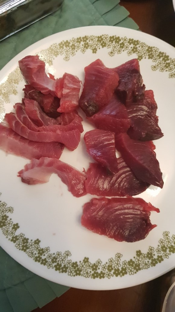 몇 마리를 집으로 가져와서 초밥을 만들어 맛있게 먹었다. 냉동실에는 참치로 가득하다.