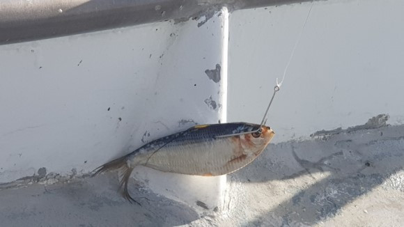 손바닥만 한 전어를 미끼로 사용한다. 바늘 하나는 전어 등위에 꼽고 하나는 눈 부위에 꿴다. 참치가 미끼를 채면 바늘이 입과 몸뚱이에 박혀 참치를 확실하게 끌어올릴 수 있게 된다.