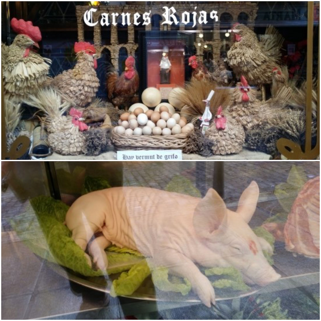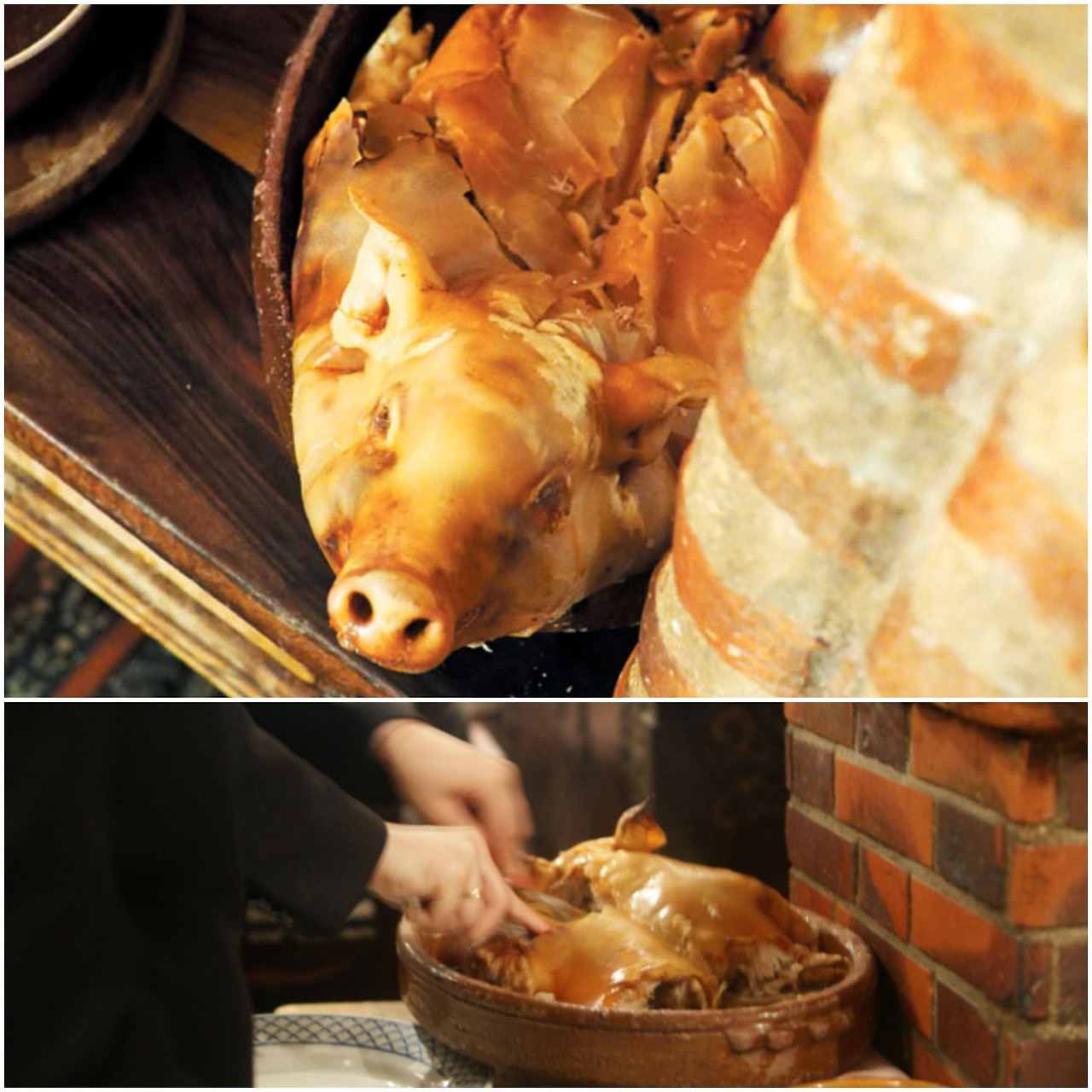 식당 입구에 전시되어 있는 꼬치니요 아사도(어린 돼지라는 뜻)를 보면서 인간의 잔인성에 대해 잠시 전율을 느꼈다. 태어난 지 2, 3주밖에 안된 새끼 돼지를 화덕에서 구워 내놓는 요리는 필리핀의 통돼지 바비큐 레촌과 비슷했다. 꼬치니요 요리의 기원은 다음과 같다. 과거 이 마을을 점령한 아랍인들을 물리치기 위해, 모슬림은 돼지고기를 먹지 않는다는 종교적 신념을 착안해 모든 식당에서 돼지고기만 구워 팔았다고 한다. 지금은 아랍인들은 없지만 오직 꼬치니요를 먹기 위해 이 도시를 찾는 사람들이 많을 정도로 유명한 음식이 되었다고 한다.