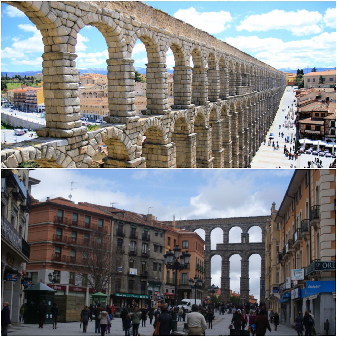 세고비아 시내에 들어서면 첫 번째로 눈에 들어오는 건축물은 2,000년 전에 세워진 수도교이다 . 1세기에 로마인이 16km 떨어진 아세베다 강물을 끌어오기 위해 축조한 수도교를 둘러보았다. 화강암을 쌓아 128개의 2층 아치로 총길이 813m, 최고 높이 30m의 수도교는 로마시대의 뛰어난 토목 공학 기술을 보여 주었다. 1906년까지 고지대에 물을 공급했다고 하니 견고함과 규모에 놀랐다.