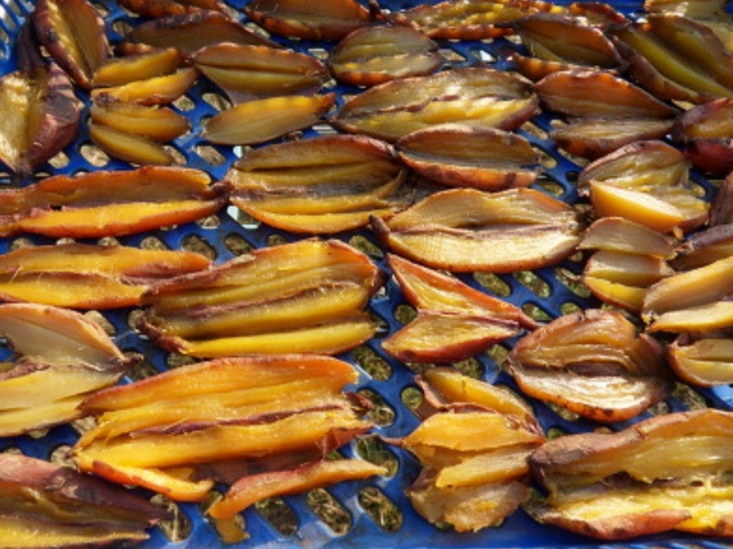 간식거리가 귀했던 어릴 적에 누이와 나는 10여 리 떨어진 고모집을 자주 갔다. 한참을 비포장 도로를 걷다가 버스나 짐차가 달려오면 도로 바깥쪽으로 돌아서서 몸을 움츠렸다. 차가 지나고 나면 덮어쓴 먼지를 툭툭 털어냈다. 한 5리를 걸은 후부터는 도로 옆 논둑으로 접어들었다. 논둑길을 걷다가 때로는 메뚜기도 잡기도 하고, 논바닥에 고인 물이 언 얼음 위를 달려 미끄름을 타기도 했다. 조그마한 내를 지나 고모집에 닿으면 마당 한쪽 채반 위에서 늦가을의 햇볕을 받아 말라가는 고구마 빼때기가 우리를 기다린다. 꾸들꾸들 말라가는 고구마 빼때기가 어린 나와 누이를 먼 고모집까지 오게 한 이유 중 하나이다. 고구마를 수확하면서 큰 놈들은 선별하여 겨우내 식량으로 사용하기 위해 광에 저장하지만, 손가락만치 가늘고 작은 고구마들은 버리기엔 아깝고 쪄먹기에는 어중간하다. 고모는 가는 고구마의 흙을 털고 물에 깨끗이 씻은 후 쪄서 채반에 널어 말렸다. 이때쯤 어린 조카들이 먼 곳에서 걸어와서 고모에게 인사는 대충 하고, 바로 채반으로 달려가서 먹기에 좋을 정도로 마른 고구마 빼때기를 골라 입에 넣고 오물오물 입을 다시는 것이다. 훗날 고모님은 당시엔 먹을 것이 귀해서 자주 오는 조카들에게 내어 줄 것이 없어서, 고구마 빼때기라도 만들어 놓을 수밖에 없었다고 회상했다.