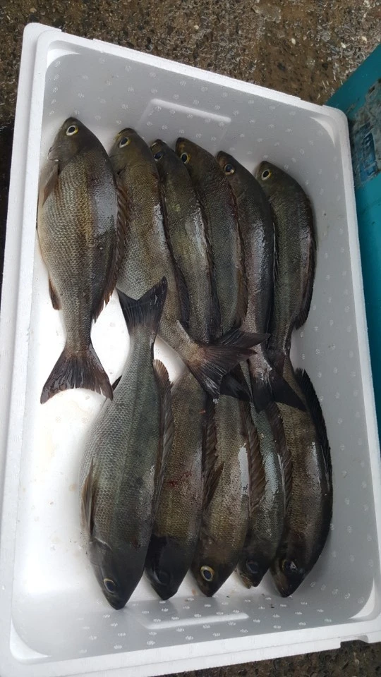오늘 선상 낚시의 최종 수확물은 3,40cm대 벤자리 11마리, 2,30cm대 벵에돔 13마리. 대형 아이스박스에 벤자리를 깔고, 그 위에 벵에돔을 차곡차곡 쌓고 얼음을 채워 집으로 가져왔다. 대마도 낚시가 좋은 것 하나는 잡은 물고기를 세관원의 통제를 안 받고 집으로 가져올 수 있다는 것이다. 부산 집에서 큰 대야에 부어 식구들에게 보였다. 다들 너무 많이 잡았다고 놀라워했고, 조카는 함께 낚시 가지 못한 것이 아쉽다고 했다. 직장 근무로 동행하지 못한 아들은 바로 회를 처먹자고 부추겼다. 하지만 몸도 피곤하고, 다음 날 출근을 위해 서울까지 가야 하는 조카들을 위해 이만 정리해야 했다. 벤자리와 벵에돔 조림을 맛보기 위해 4마리만 남기고 35리터 아이스박스에 가득 채워 누나 집으로 보내기로 했다. 은퇴 후 서울생활을 접고 문경에서 사과 과수원을 하는 누이가 비늘을 치고 소금 쳐서 한 이틀 동안 깨끗한 공기에 말리면 그 맛이 최고가 될 것이다. 당일 잡은 싱싱한 물고기를 그 날 말리면 그 맛이 절정에 달하는 법이다.