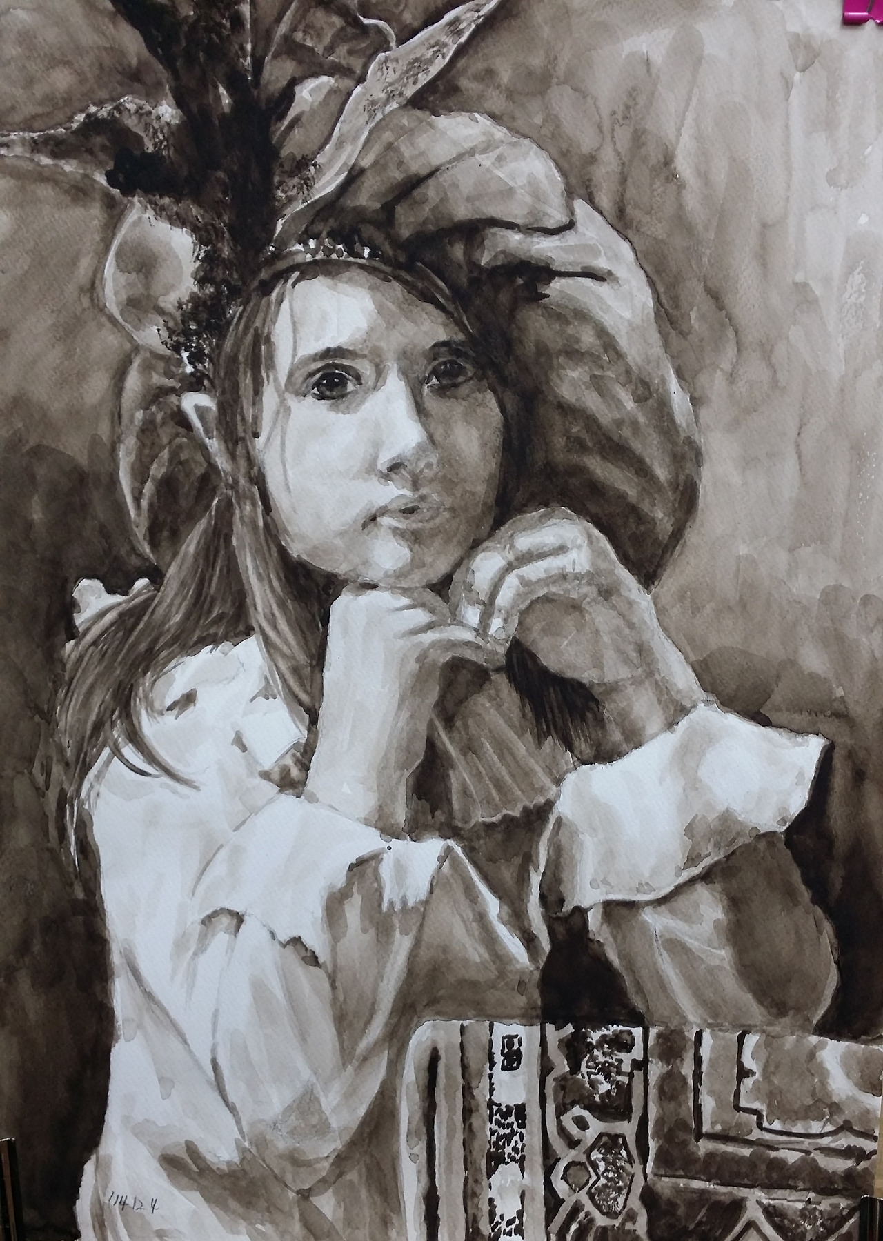 먼저 드로잉 과정을 통해 전체 그림을 파악한 후, 단색으로 채색을 했다. 물감의 농도 조절이 연필로 덧칠하는 것보다 몇 배나 어려웠다.
