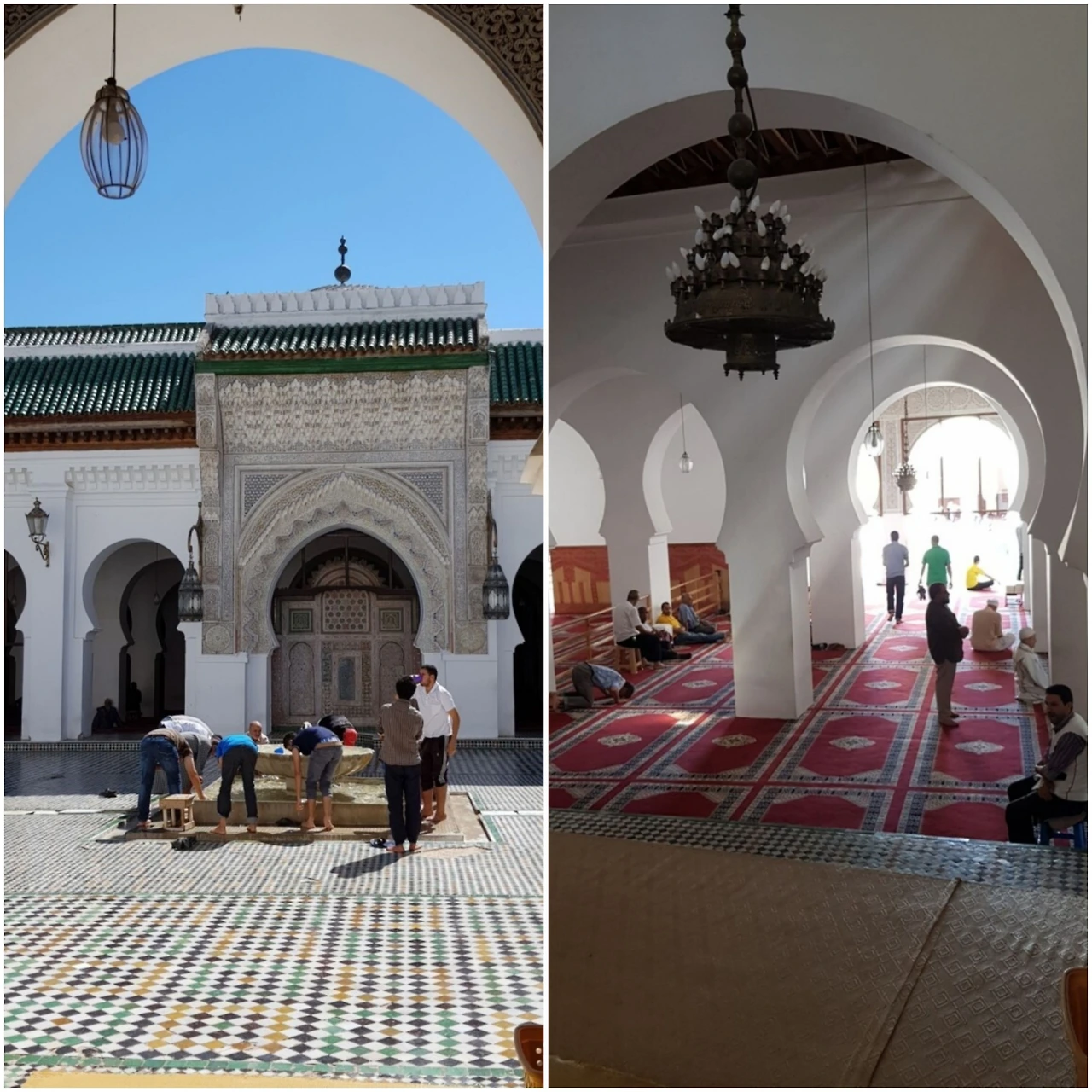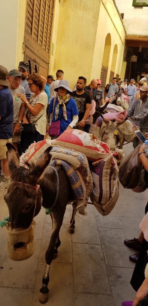 페스는 자동차가 다니지 않는다. 대신 당나귀가 지나다닌다. 수많은 좁고 어두운 거리를 사람들은 잘도 헤쳐 다닌다. 길을 잃지 않는 것이 용하다. 이 옛 도심지 한편에는 1,350 경년에 세워진 메데르사 부 이나니아라는 신학대학이 있는데, 지금은 회교사원으로 사용되고 있다. 마침 기도시간이 되어 뭇 주민들의 바삐 들어가서 손발을 씻고 기도를 하고 있었다.