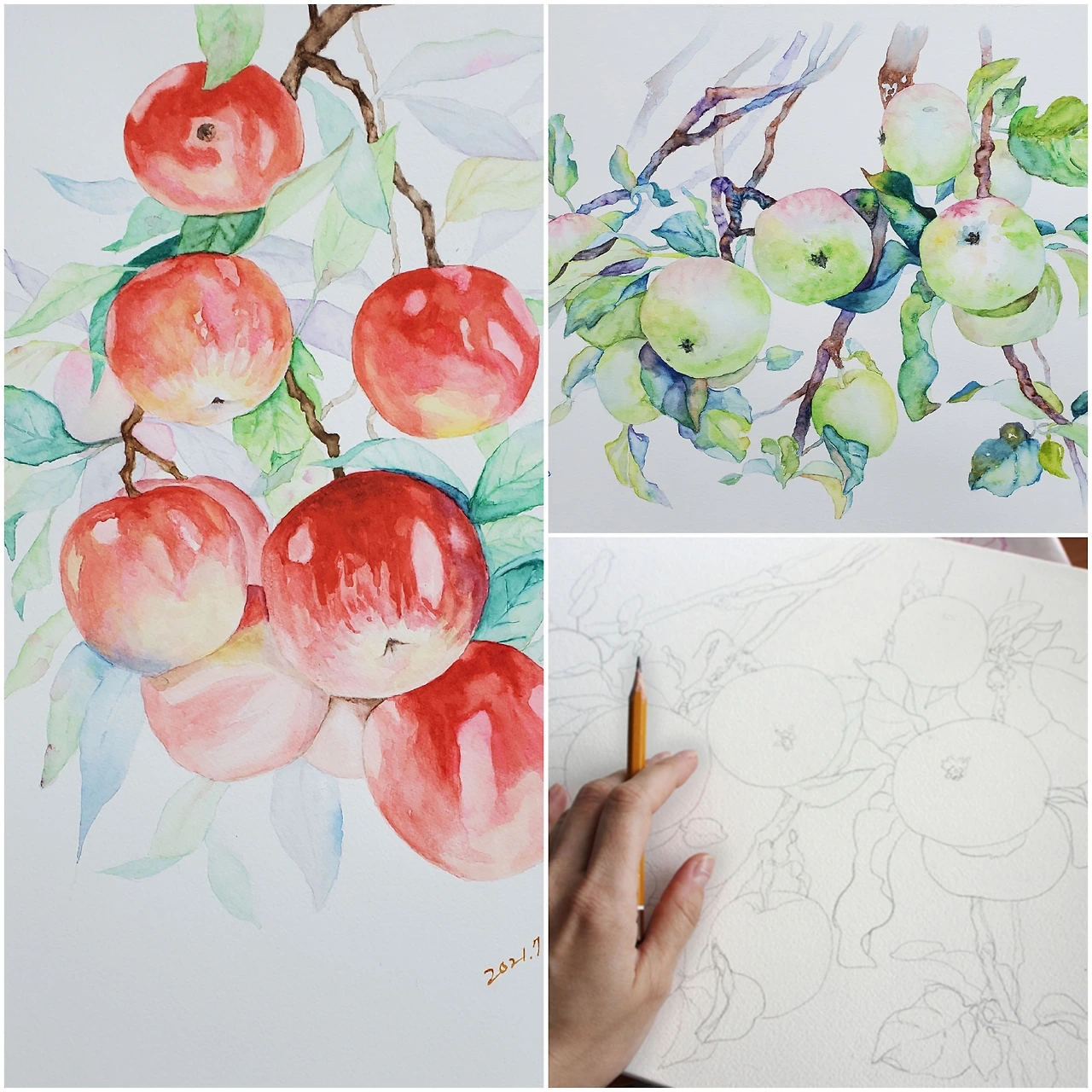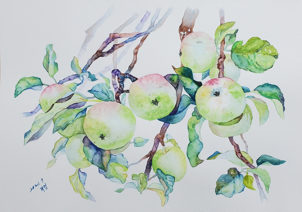 사과와 나뭇잎, 나뭇가지의 표현에 변화를 주었습니다.